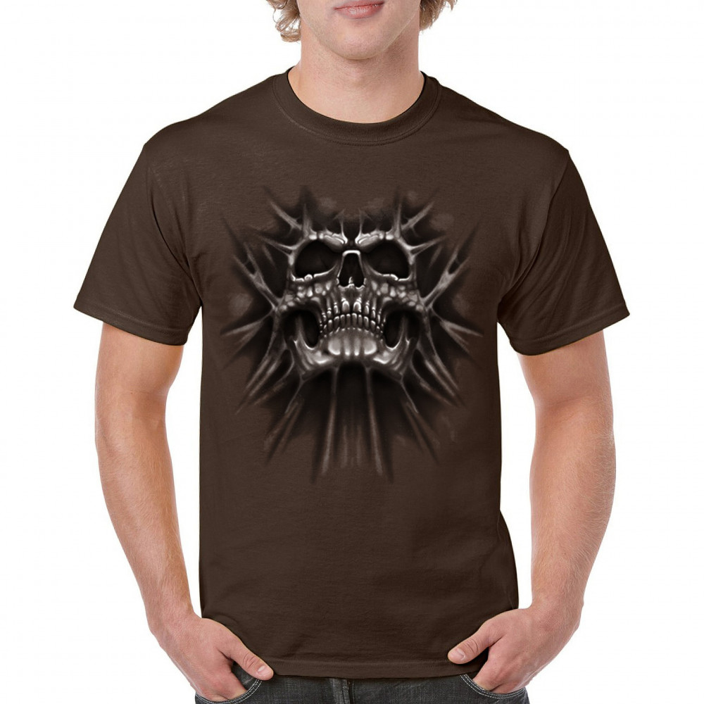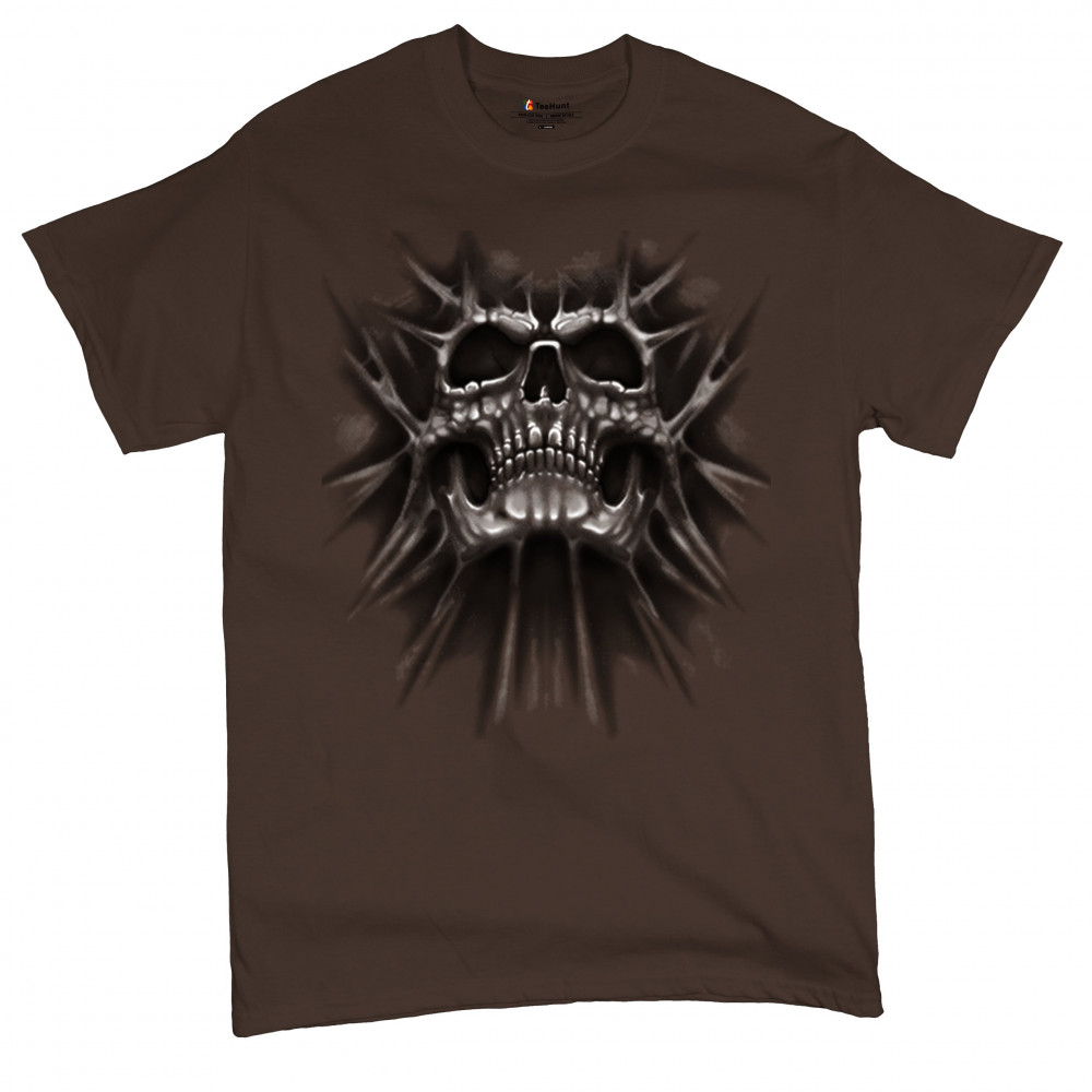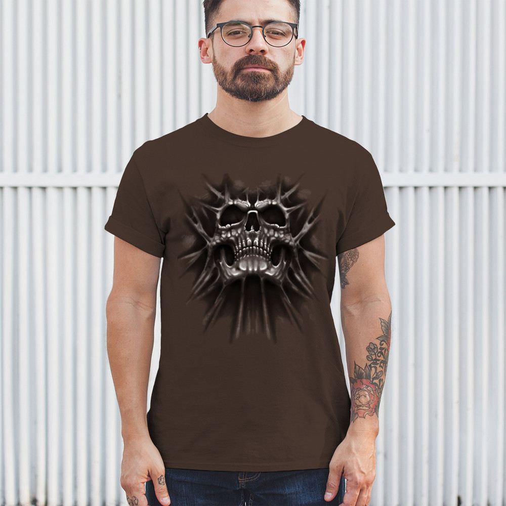 Gothic skull biker shirt with roots design. Perfect for Metalhead, Rock n Roll fans, edgy rebel fashion, and spooky Halloween vibes.