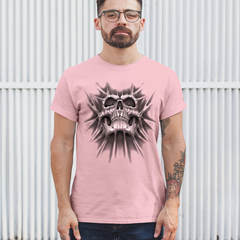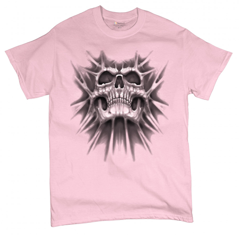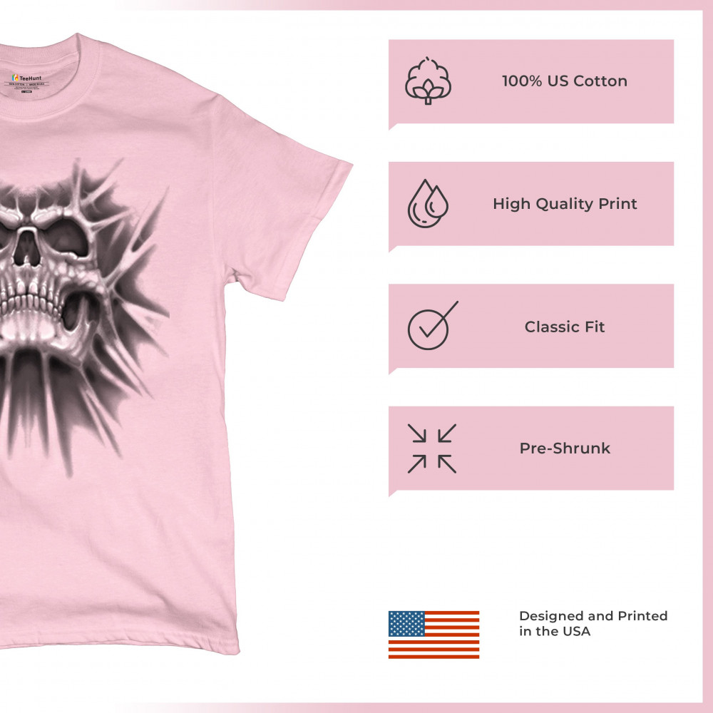 Gothic skull biker shirt with roots design. Perfect for Metalhead, Rock n Roll fans, edgy rebel fashion, and spooky Halloween vibes.