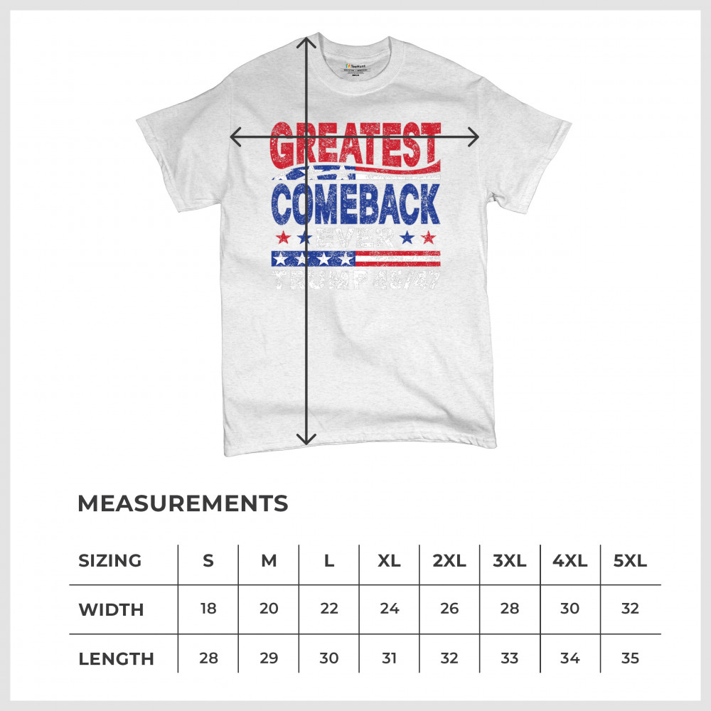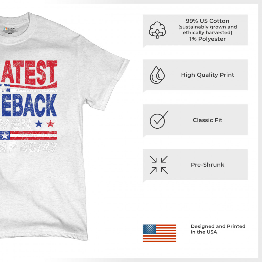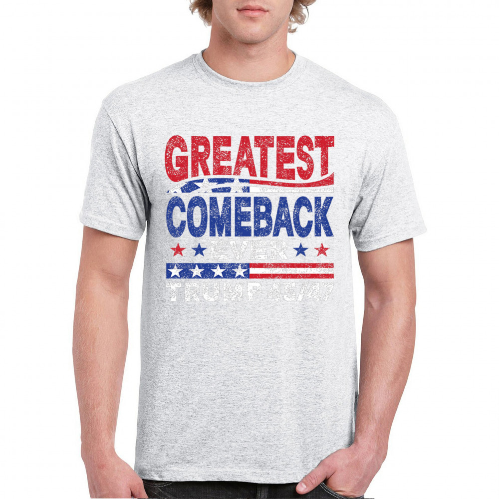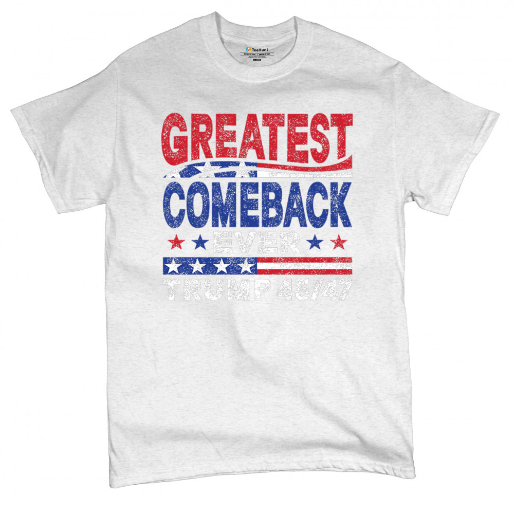 The "Greatest Comeback Ever" design is a tribute to resilience, patriotism, and the fight for American values. Featuring bold patriotic colors and a slogan that embodies the spirit of victory, this design is perfect for Trump supporters and conservatives who believe in never surrendering. Celebrate the leadership of Donald J. Trump as the 45th and 47th president and join the movement for America's future.