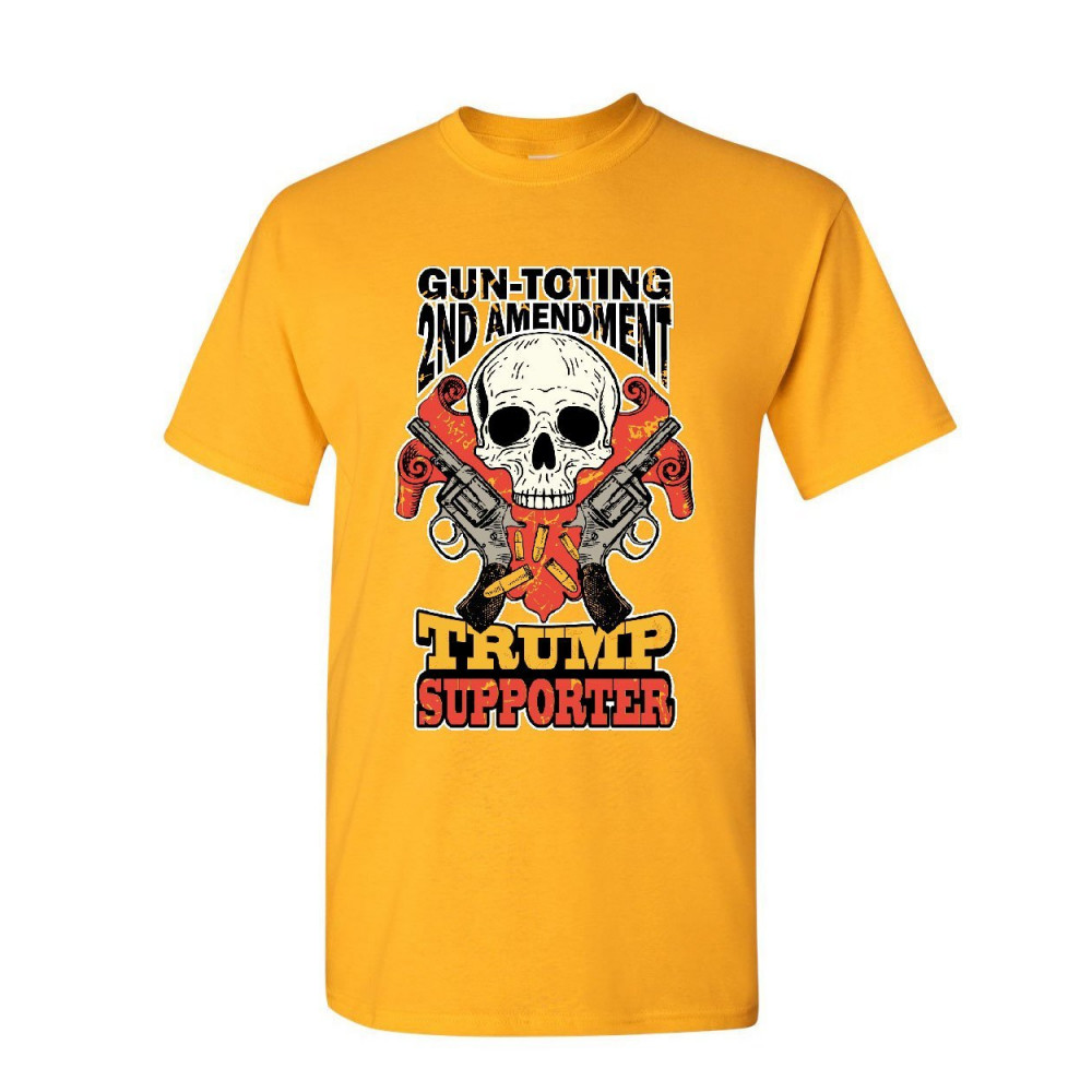 GUN-TOTING 2ND AMENDMENT TRUMP SUPPORTER gun-toting trump supporter t-shirt 2nd amendment skull revolvers mens tee shirt yellow