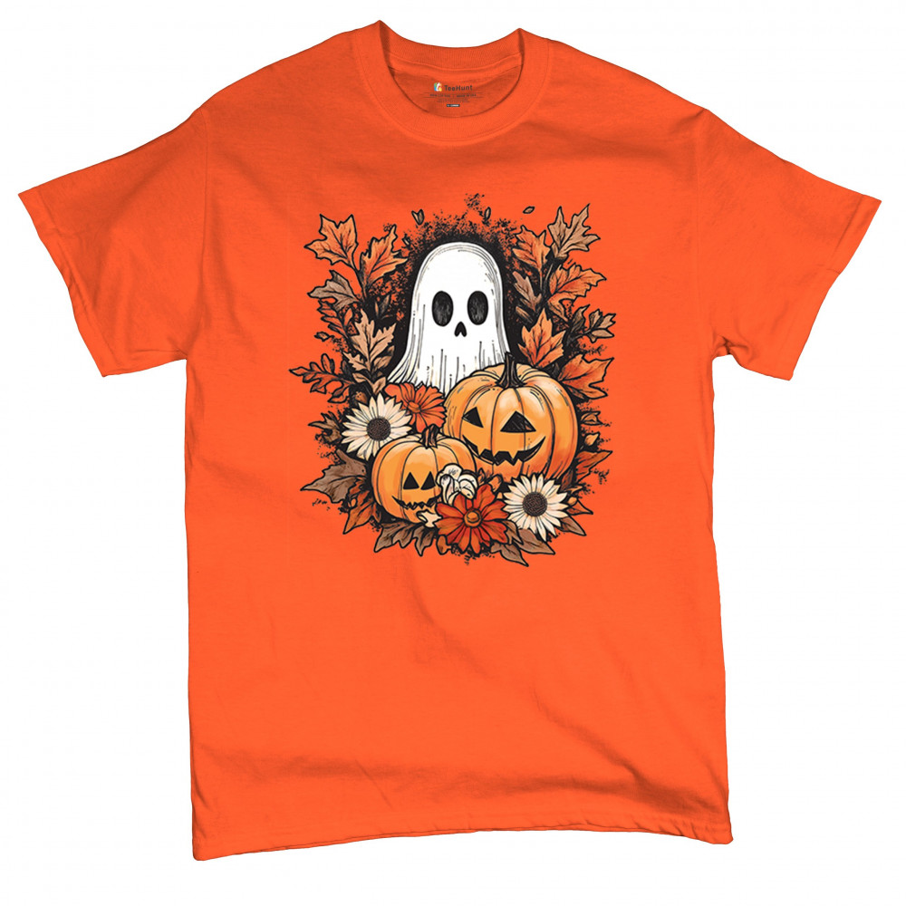 Celebrate the arrival of fall with this delightful design featuring pumpkins, autumn leaves, flowers, and a cute ghost. It's the perfect addition to your Halloween and autumn-themed wardrobe, or even as decor to welcome the fall spirit into your home. The combination of spooky and cozy elements creates a festive yet warm vibe, ideal for Halloween parties, pumpkin patch trips, or just enjoying the beautiful fall season.