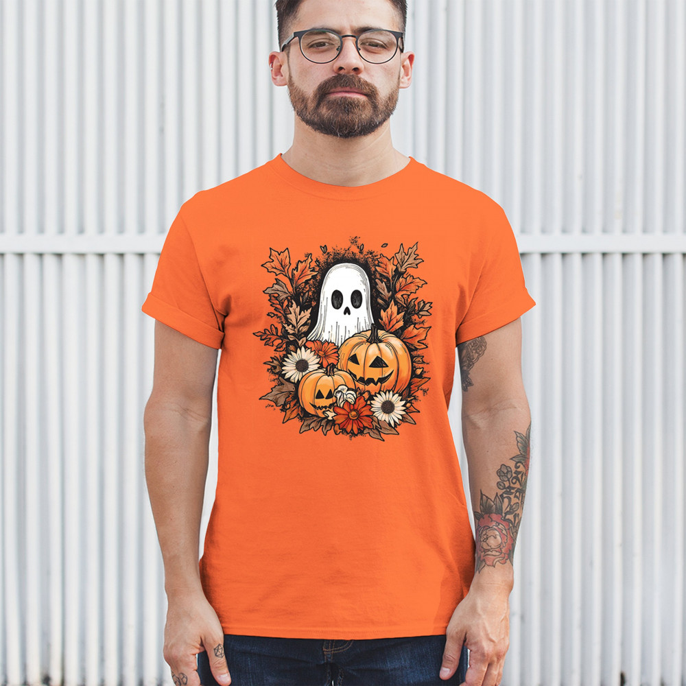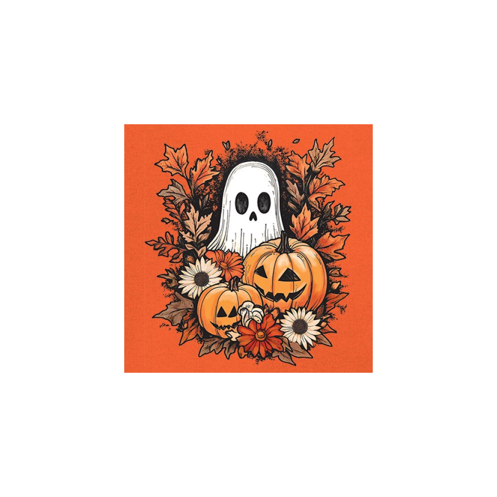 This pumpkin and ghost-themed design is perfect for Halloween and fall. Embrace the spooky season in style with this festive print!