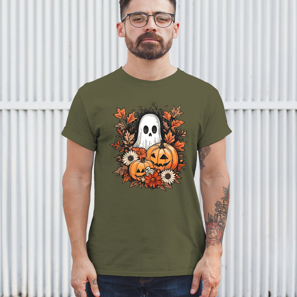 This pumpkin and ghost-themed design is perfect for Halloween and fall. Embrace the spooky season in style with this festive print!