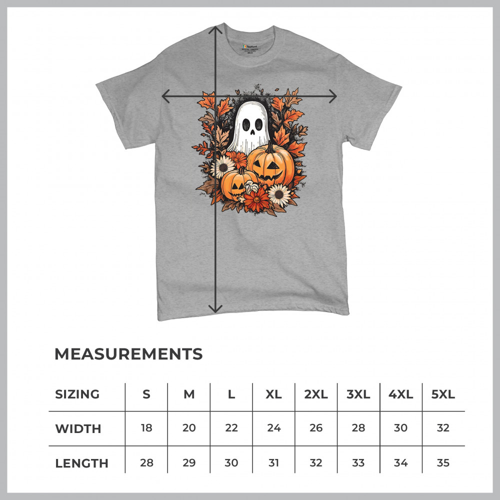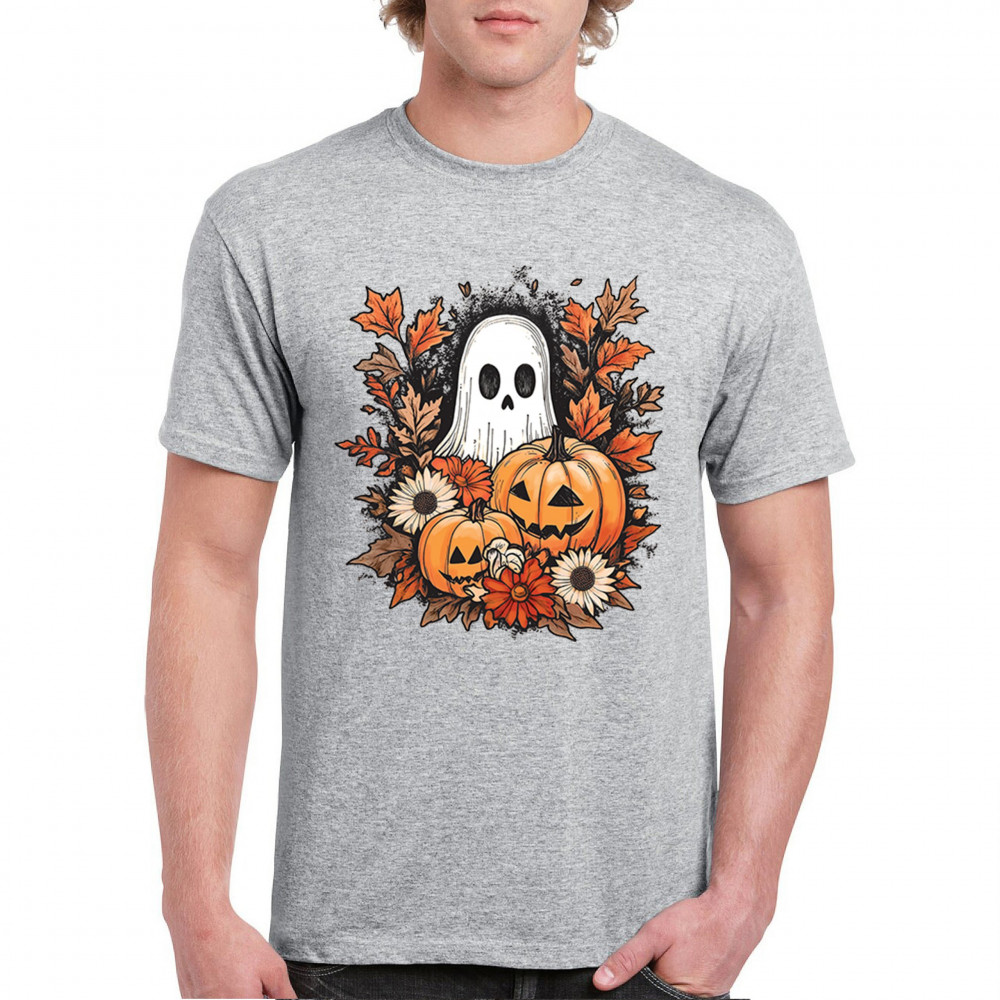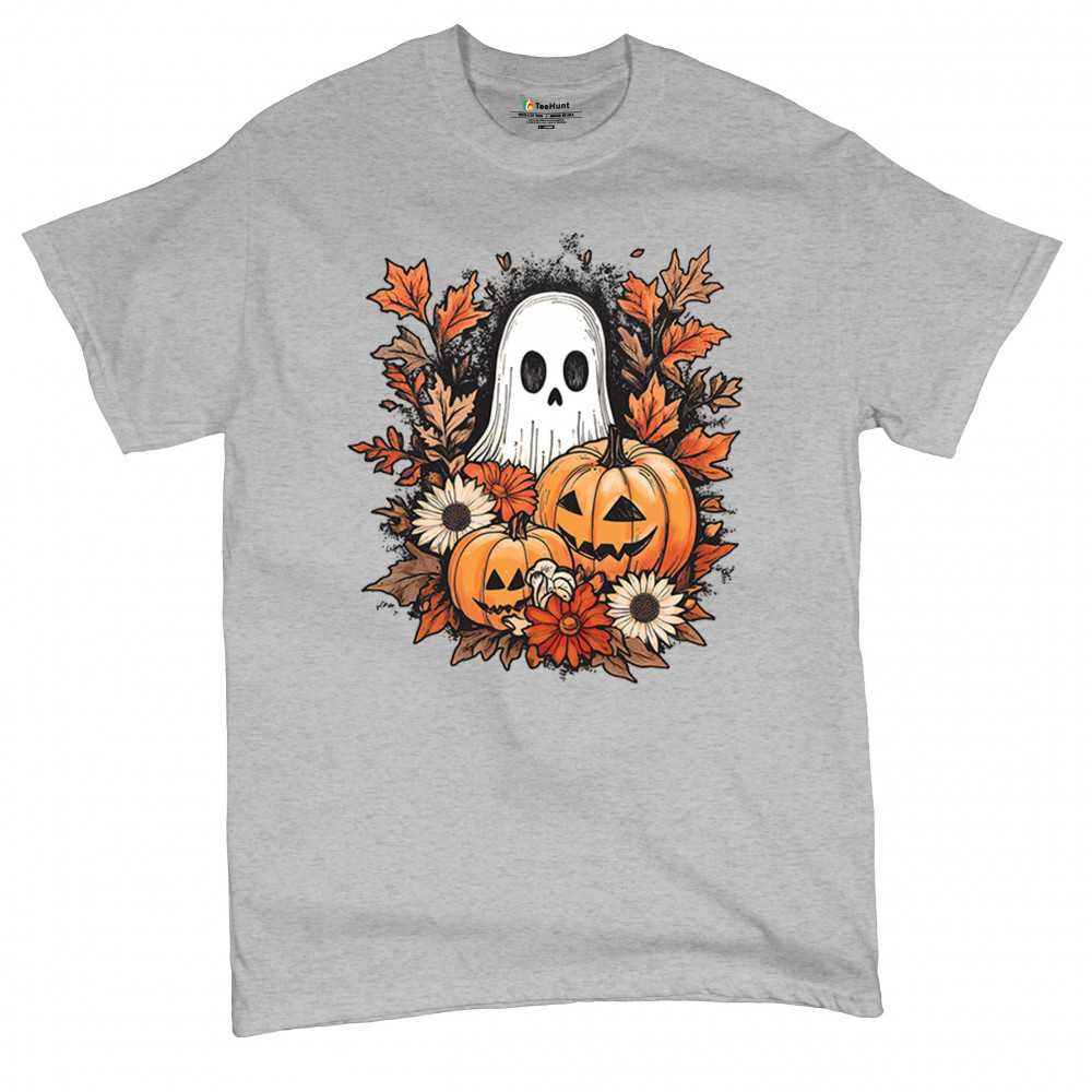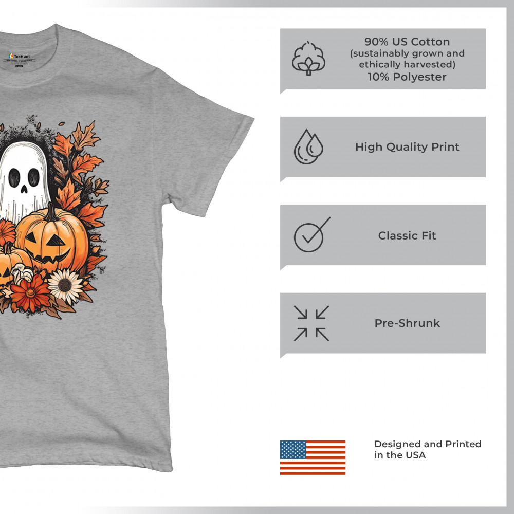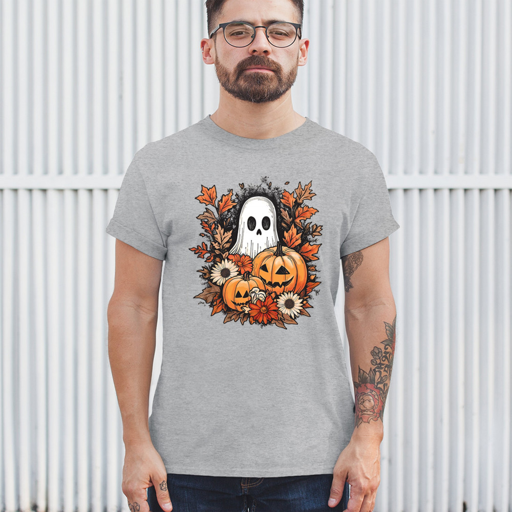 Celebrate the arrival of fall with this delightful design featuring pumpkins, autumn leaves, flowers, and a cute ghost. It's the perfect addition to your Halloween and autumn-themed wardrobe, or even as decor to welcome the fall spirit into your home. The combination of spooky and cozy elements creates a festive yet warm vibe, ideal for Halloween parties, pumpkin patch trips, or just enjoying the beautiful fall season.