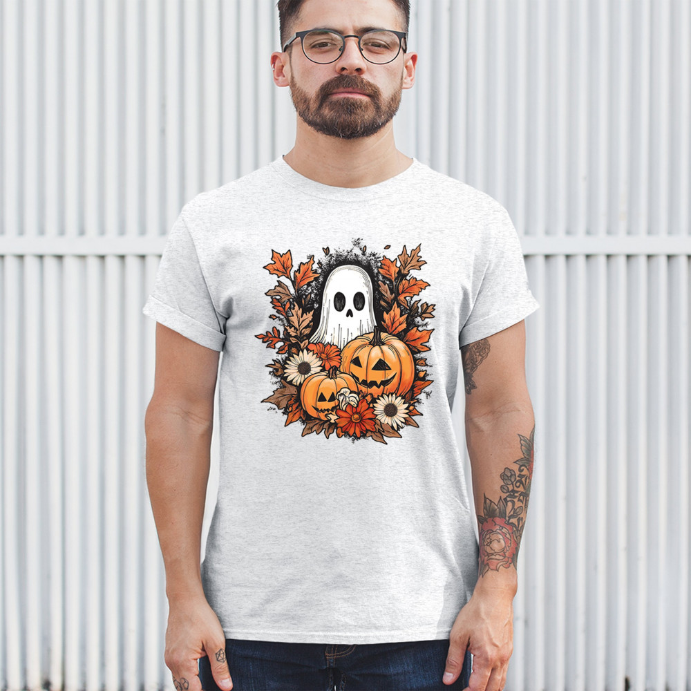 This pumpkin and ghost-themed design is perfect for Halloween and fall. Embrace the spooky season in style with this festive print!