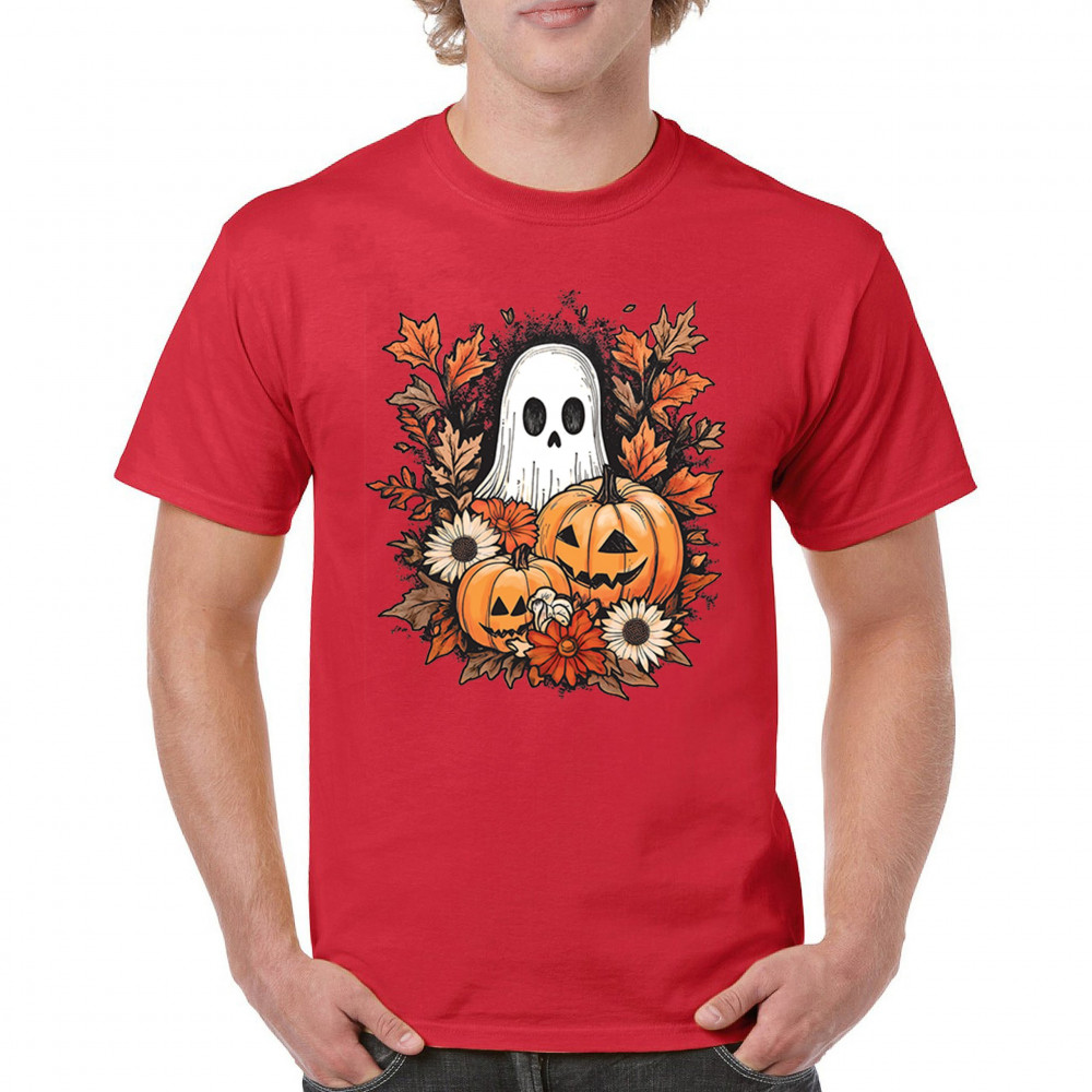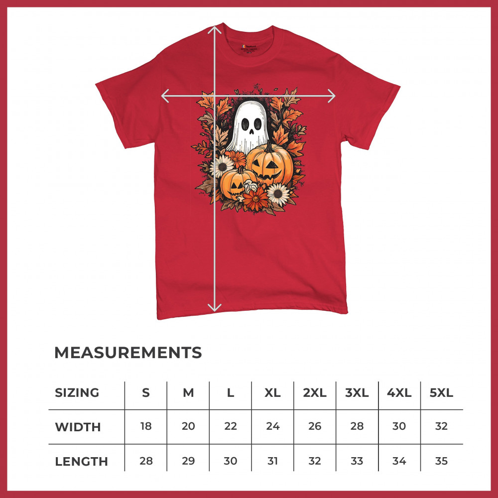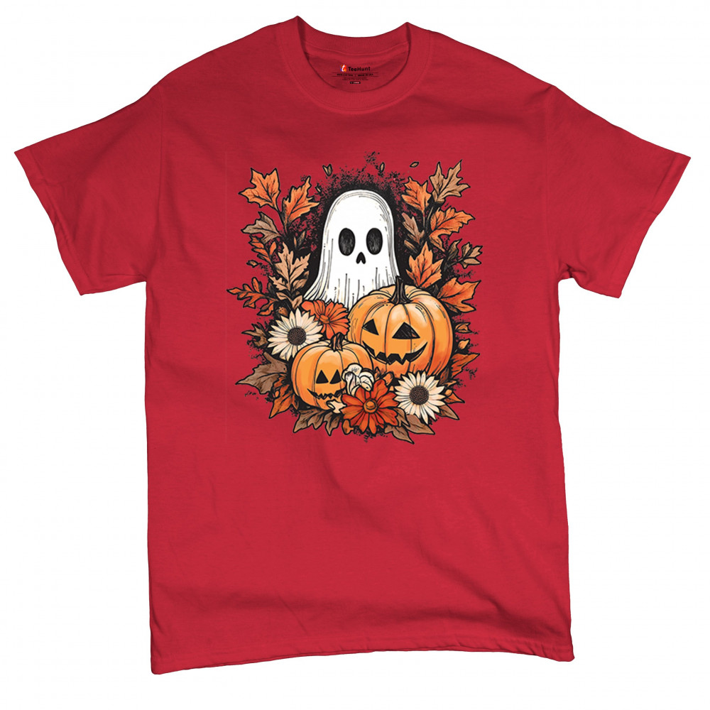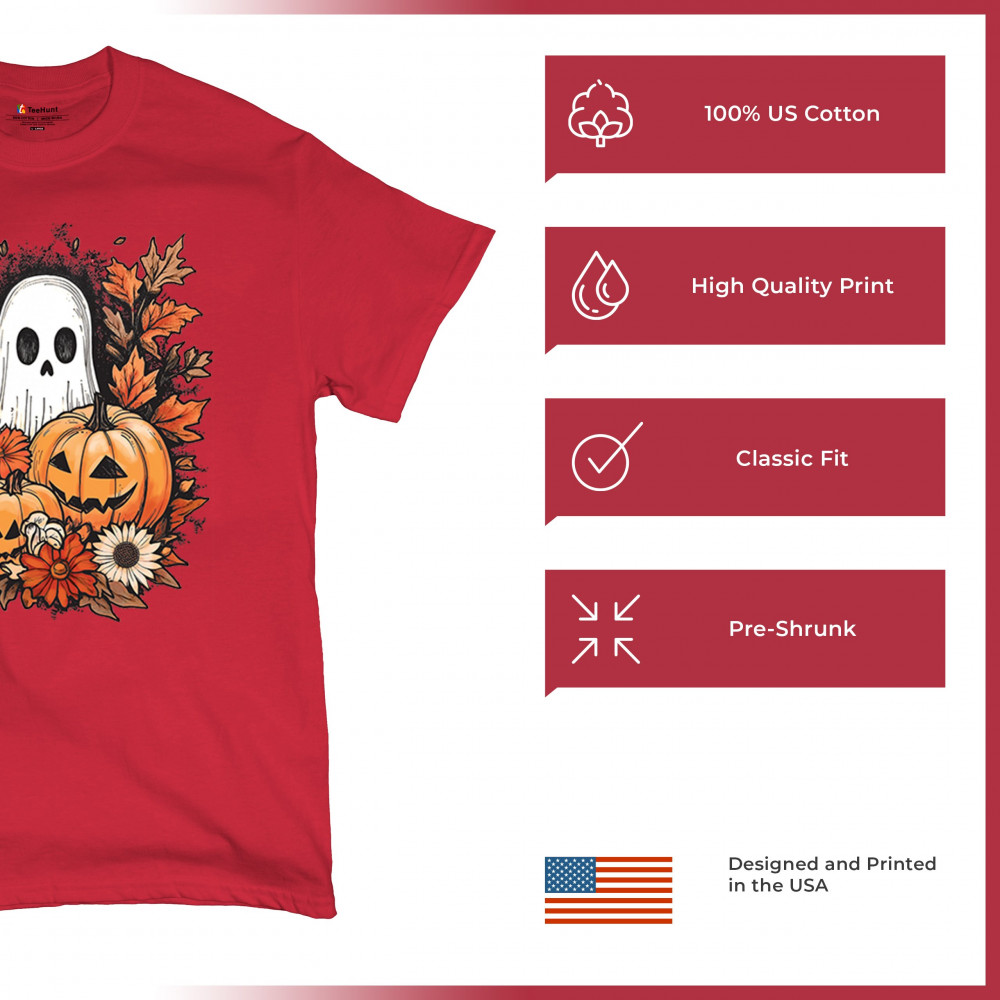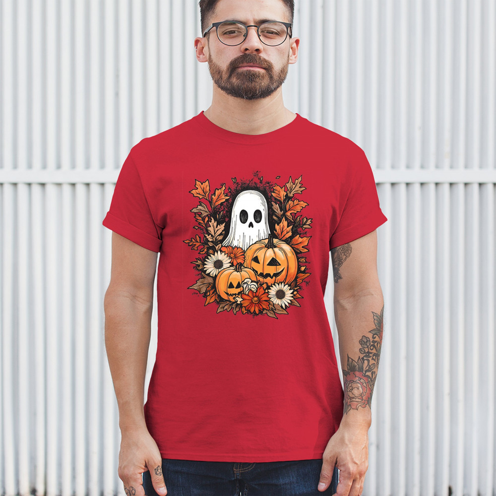 Celebrate the arrival of fall with this delightful design featuring pumpkins, autumn leaves, flowers, and a cute ghost. It's the perfect addition to your Halloween and autumn-themed wardrobe, or even as decor to welcome the fall spirit into your home. The combination of spooky and cozy elements creates a festive yet warm vibe, ideal for Halloween parties, pumpkin patch trips, or just enjoying the beautiful fall season.