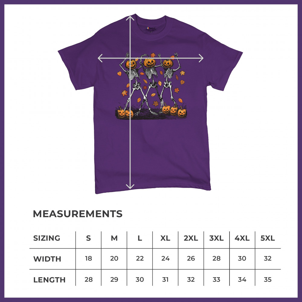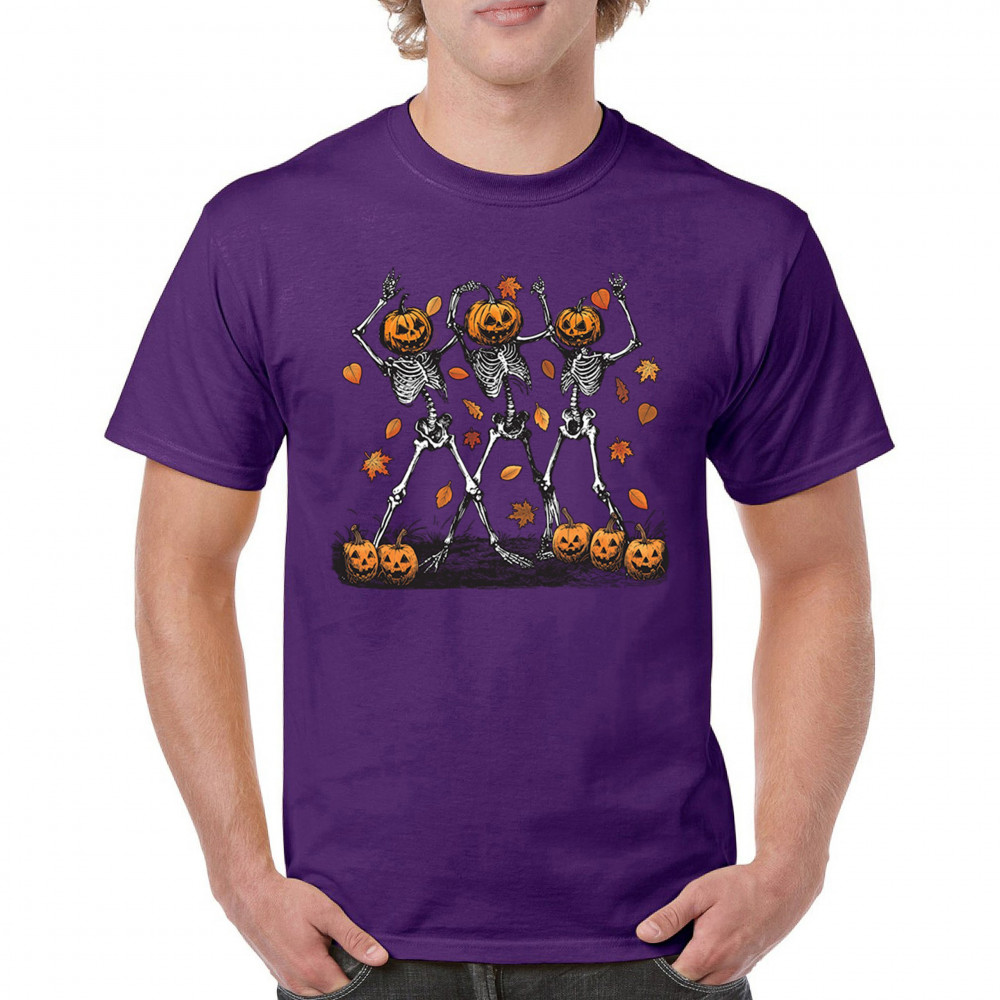 Add a touch of spooky fun to your wardrobe with this lively design featuring pumpkin-headed skeletons dancing through a swirl of autumn leaves. Perfect for Halloween parties, trick-or-treating, and fall festivals, this design is a must-have for anyone who enjoys the whimsical side of the spooky season. Made with comfort and quality in mind, this is the perfect apparel for all your October gatherings and events. Wear it to show off your Halloween spirit!
