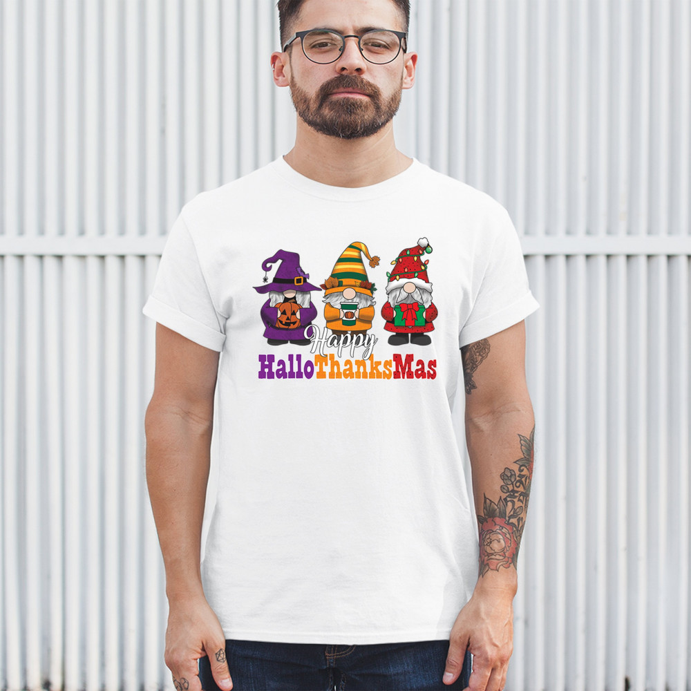 Celebrate the season of HalloThanksMas with this playful gnome design – perfect for Halloween, Thanksgiving, and Christmas festivities!