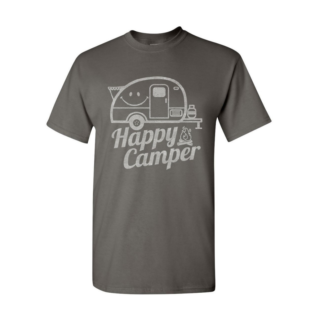 HAPPY CAMPER t-shirt rv tourism camping summer nature travel mens tee shirt charcoal