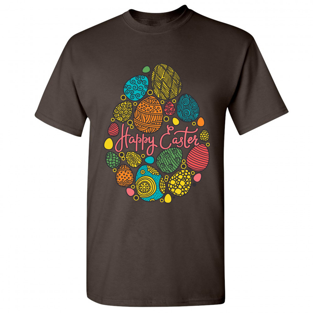 HAPPY EASTER t-shirt pascha easter eggs jesus ressurection sunday men's tee brown