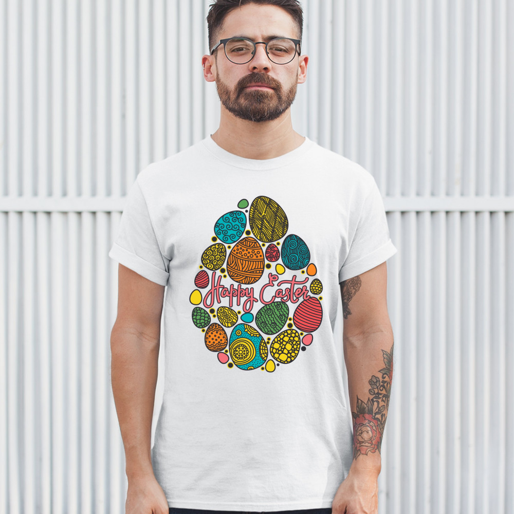HAPPY EASTER t-shirt pascha easter eggs jesus ressurection sunday men's tee white