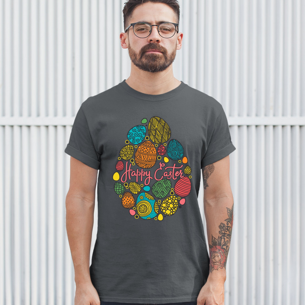 HAPPY EASTER t-shirt pascha easter eggs jesus ressurection sunday men's tee charcoal