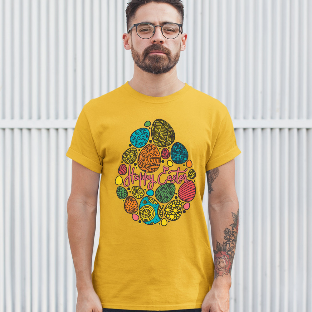 HAPPY EASTER t-shirt pascha easter eggs jesus ressurection sunday men's tee yellow