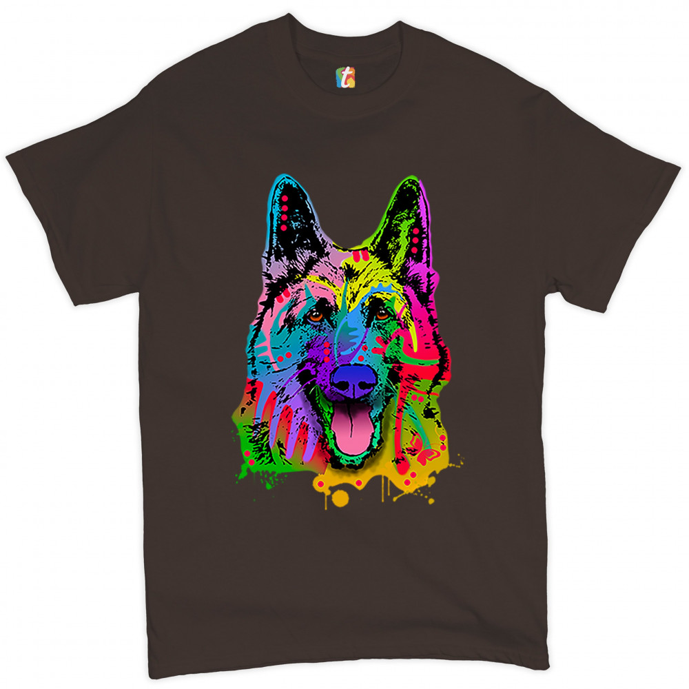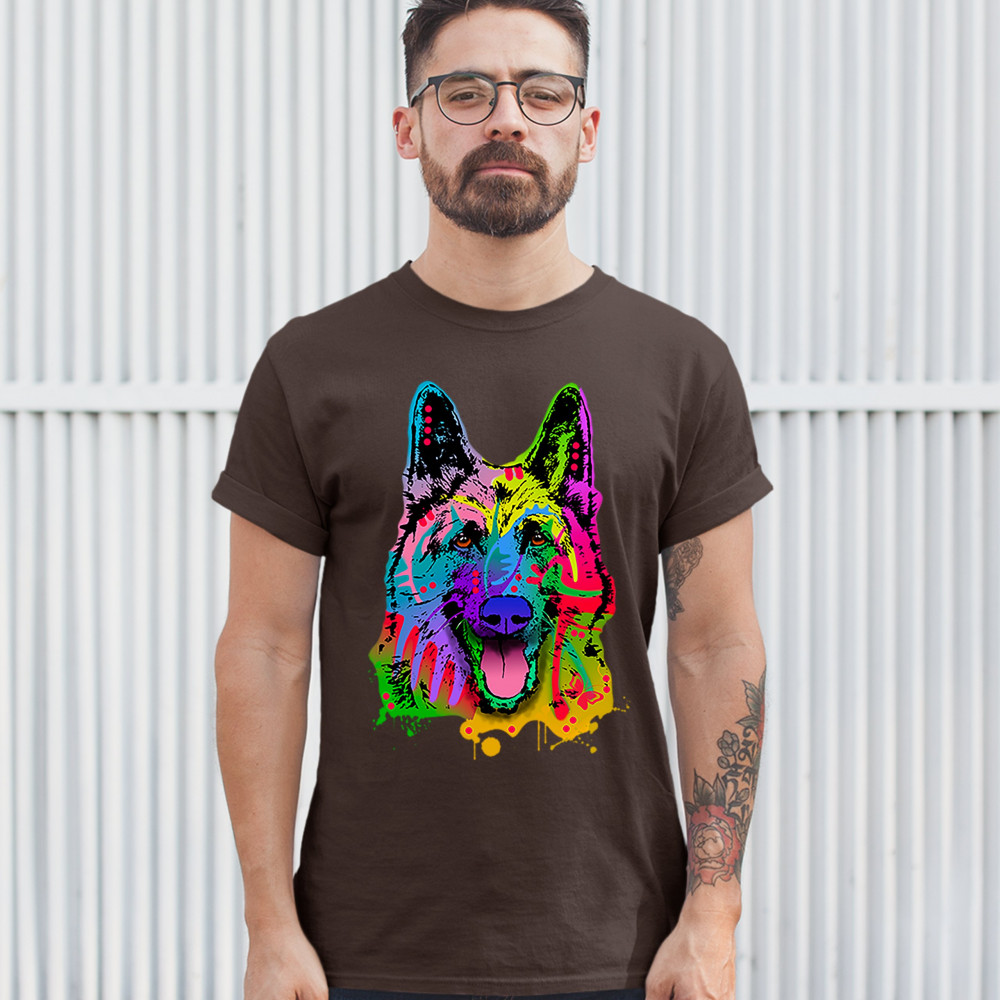 HAPPY GERMAN SHEPHERD t-shirt andy maxx i love my dog best friend men's tee brown