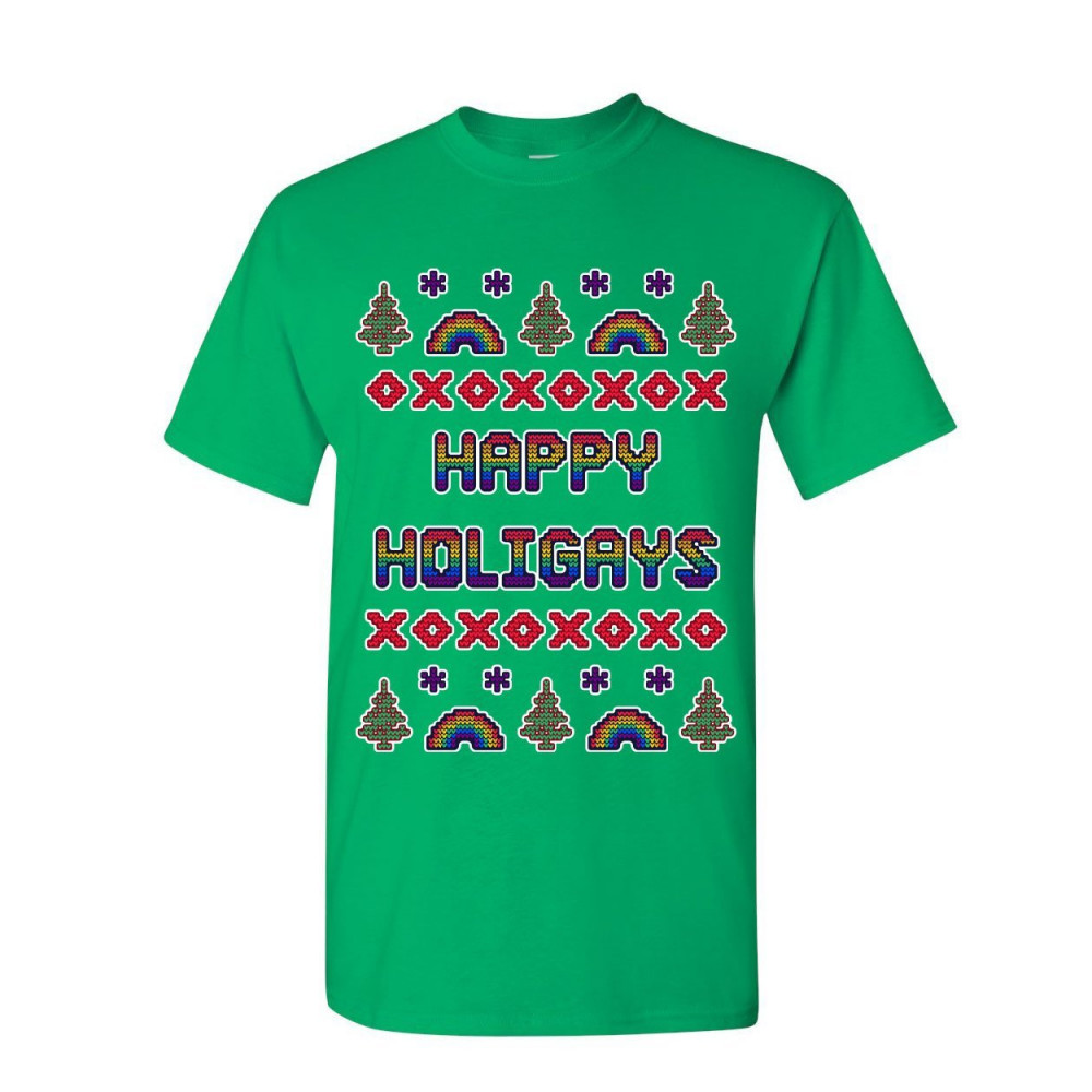 HAPPY HOLIGAYS t-shirt gay merry christmas ho ho ho lgbt xmas mens tee shirt green
