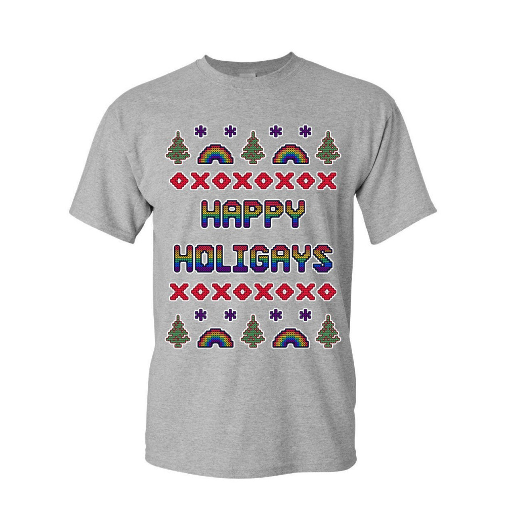 HAPPY HOLIGAYS t-shirt gay merry christmas ho ho ho lgbt xmas mens tee shirt sport gray