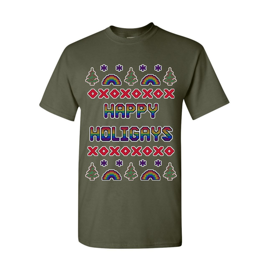 HAPPY HOLIGAYS t-shirt gay merry christmas ho ho ho lgbt xmas mens tee shirt military green