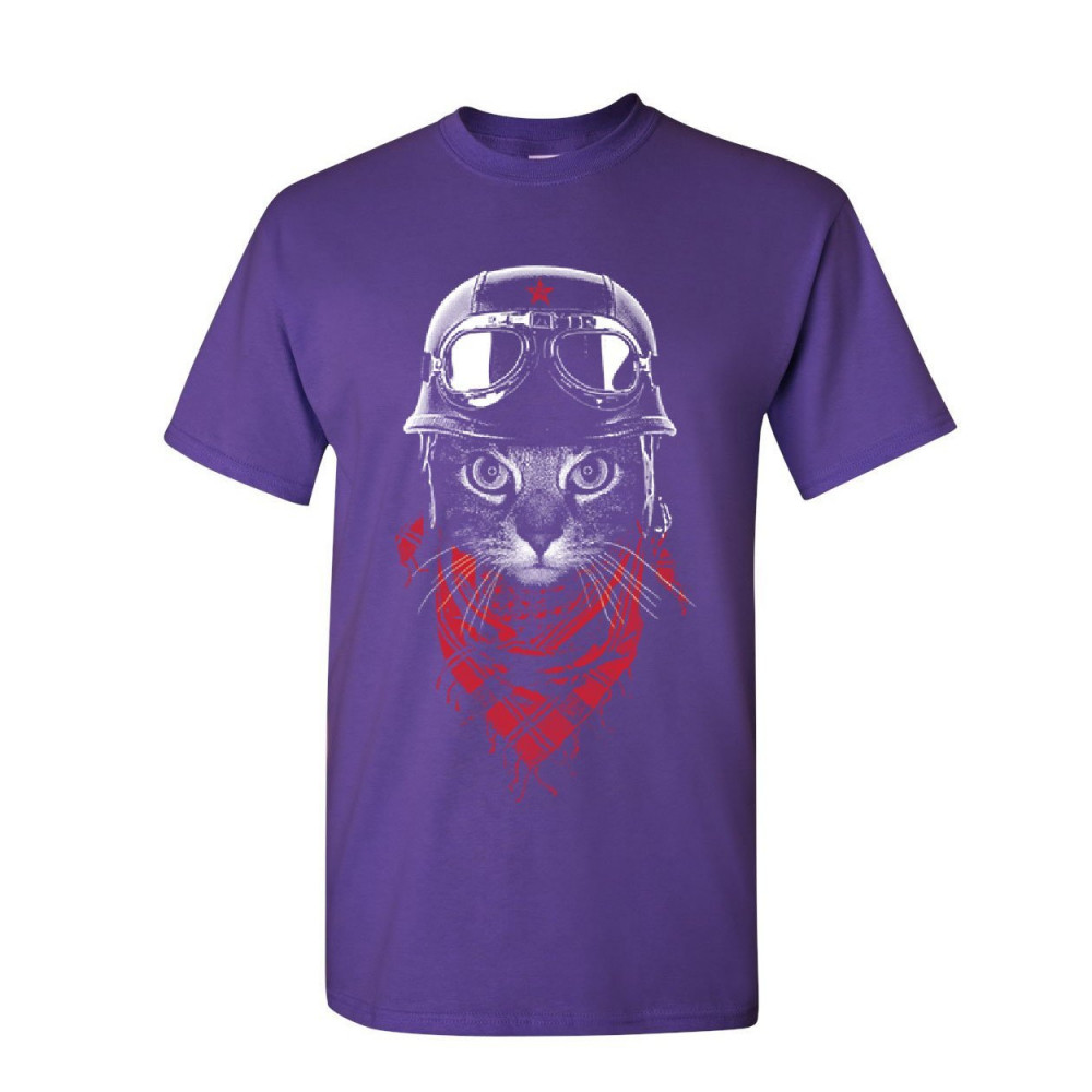 HARDCORE BIKER CAT t-shirt adventurer motorcycle rider kitten mens tee shirt purple