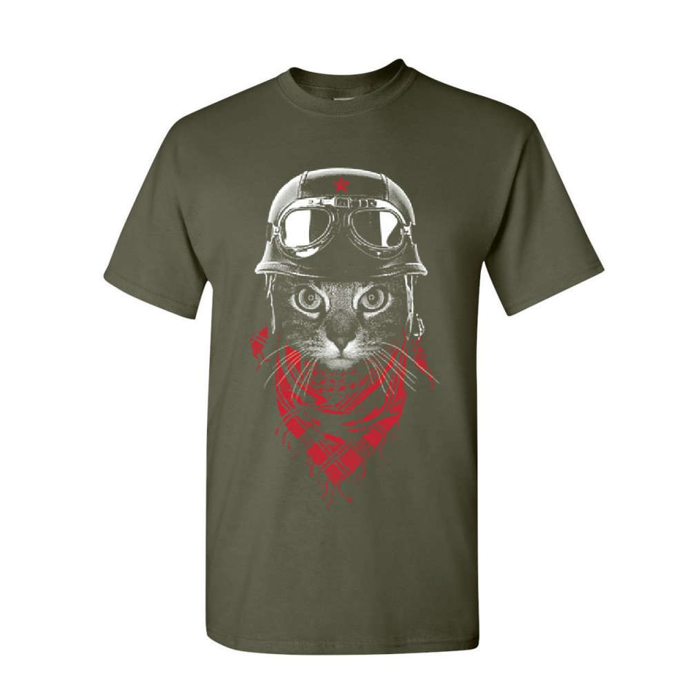 HARDCORE BIKER CAT t-shirt adventurer motorcycle rider kitten mens tee shirt military green