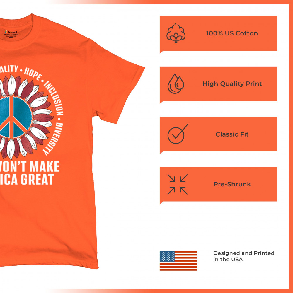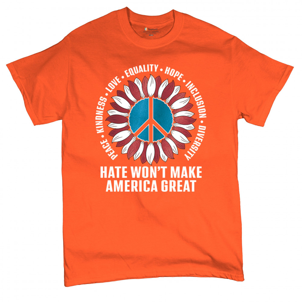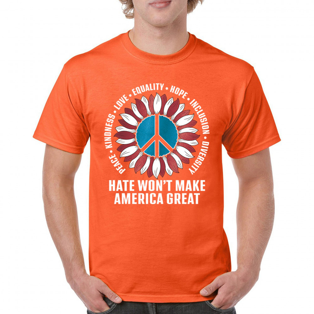 Embrace the message of love, equality, and unity with this eye-catching design. The sunflower and peace symbol represent a commitment to kindness and inclusion, rejecting hate and division. Perfect for those who support liberal values, this design is a bold statement against negativity and for a brighter future. Wear it proudly to show your belief in a diverse, united America. Let this design be a symbol of hope and progress for all.