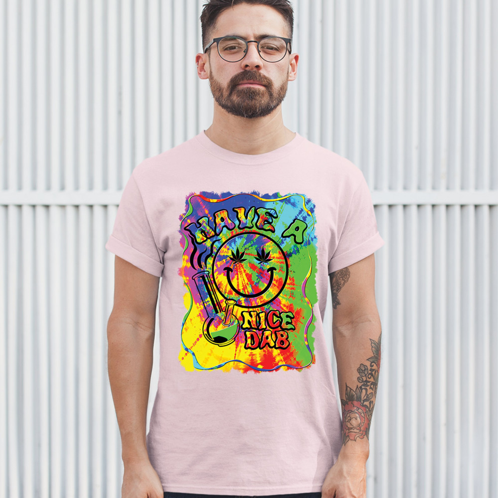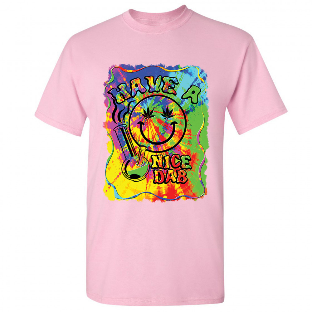 HAVE A NICE DAB t-shirt 420 happy face hitting marijuana weed bong men's tee light pink