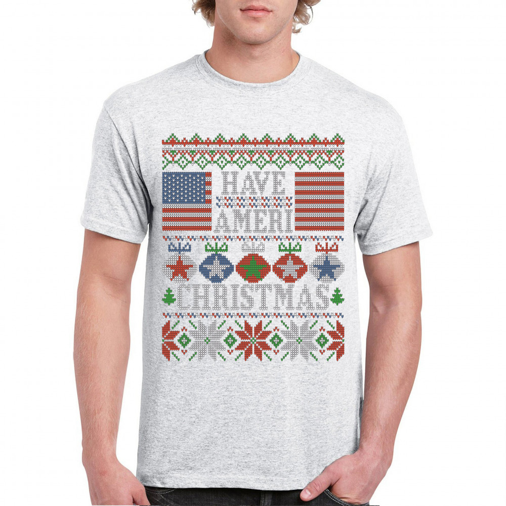 HAVE AMERI CHRISTMAS t-shirt american flag ugly sweater patriotic men's tee ash gray