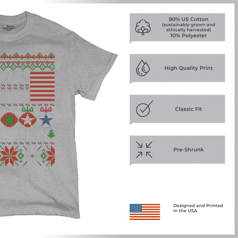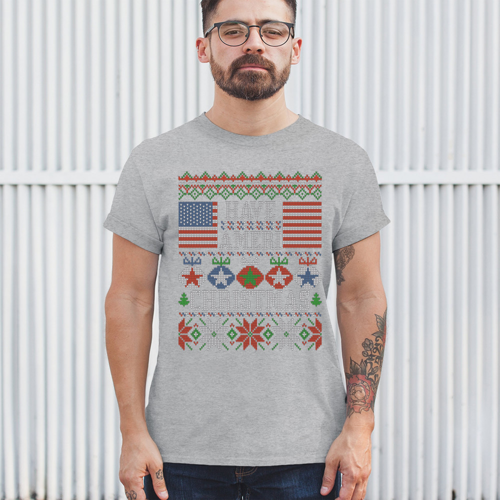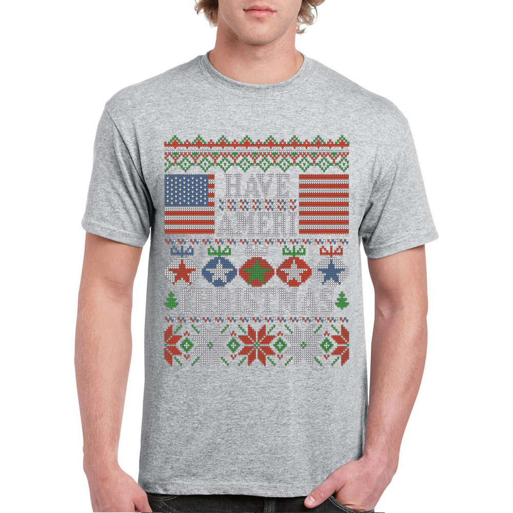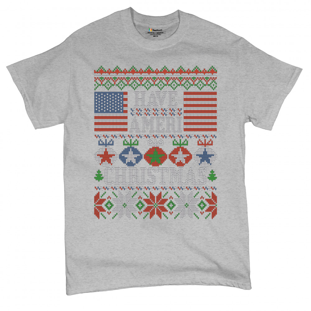 HAVE AMERI CHRISTMAS t-shirt american flag ugly sweater patriotic men's tee gray