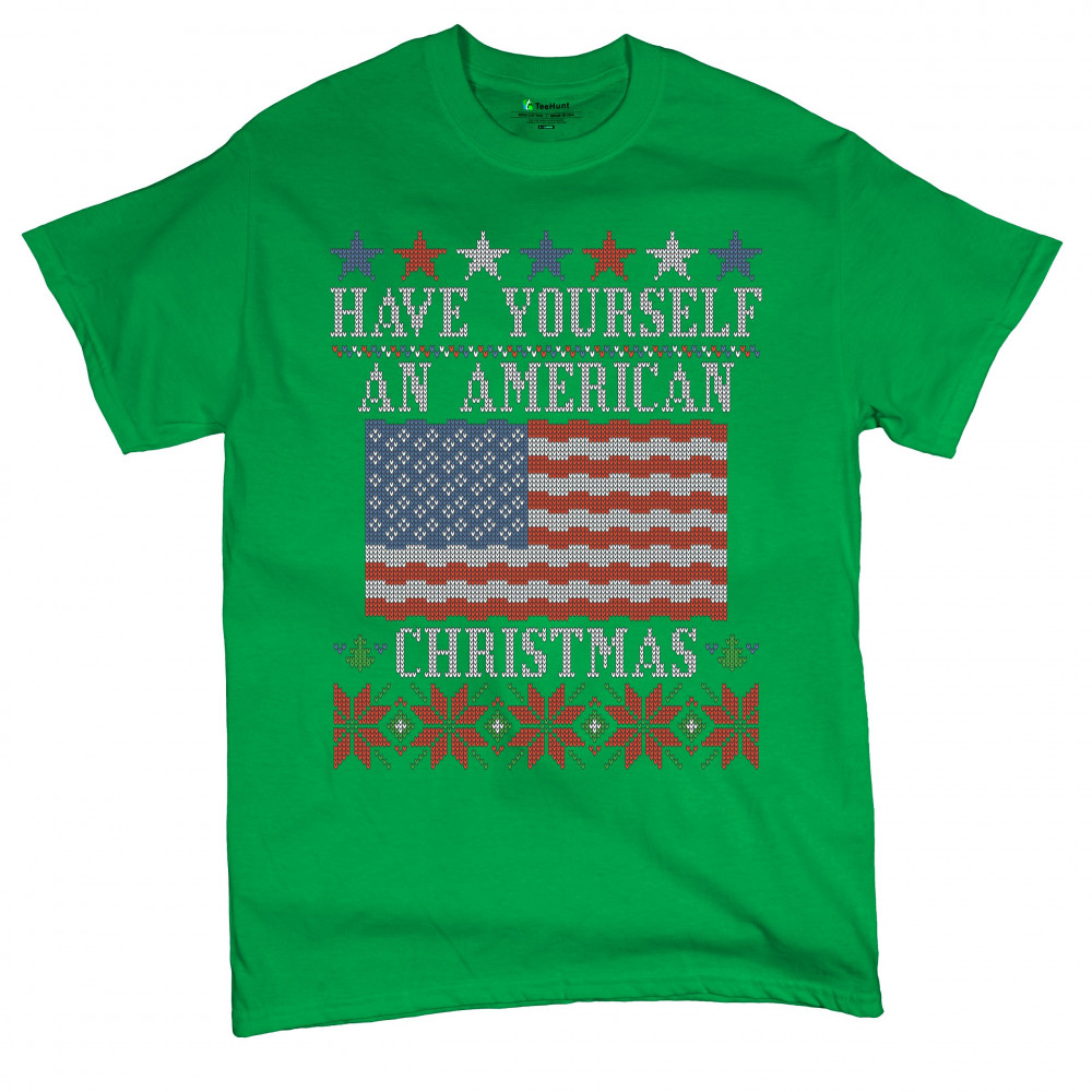 HAVE YOURSELF AN AMERICAN CHRISTMAS t-shirt ugly sweater patriotic men's tee green