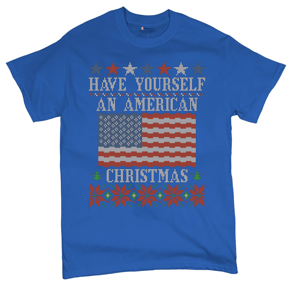 HAVE YOURSELF AN AMERICAN CHRISTMAS t-shirt ugly sweater patriotic men's tee royal blue