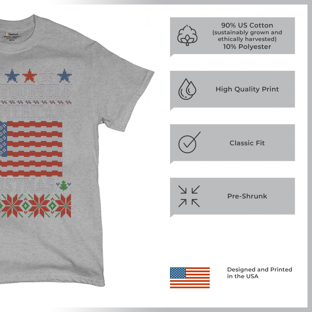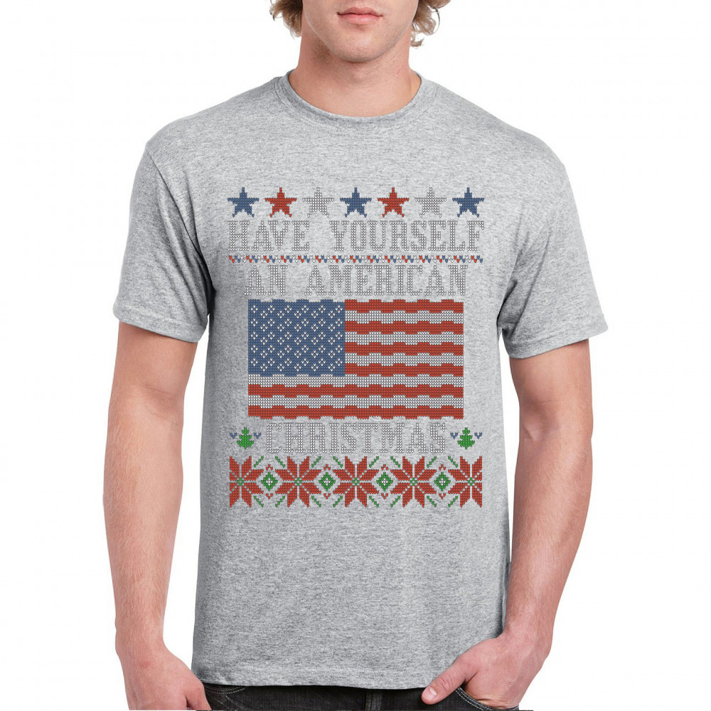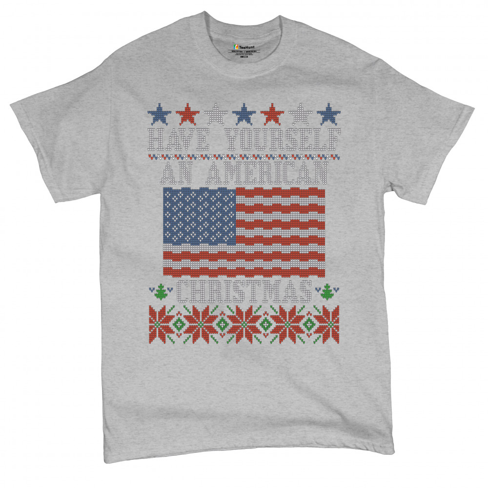 HAVE YOURSELF AN AMERICAN CHRISTMAS t-shirt ugly sweater patriotic men's tee gray