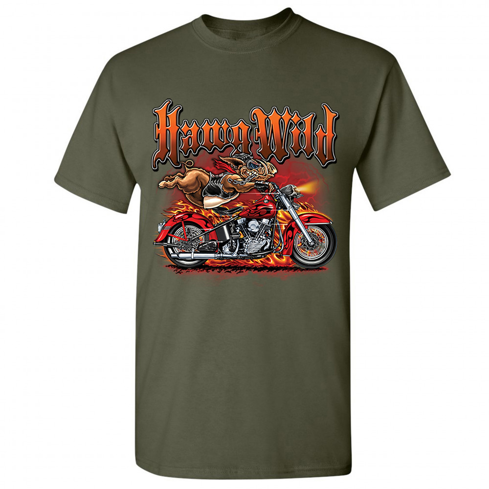 HAWG WILD t-shirt born to be wild biker rider motorcycle enthusiast men's tee military green