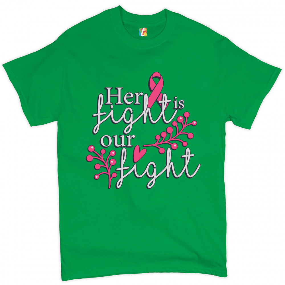 HER FIGHT IS OUR FIGHT t-shirt breast cancer support pink ribbon men's tee green