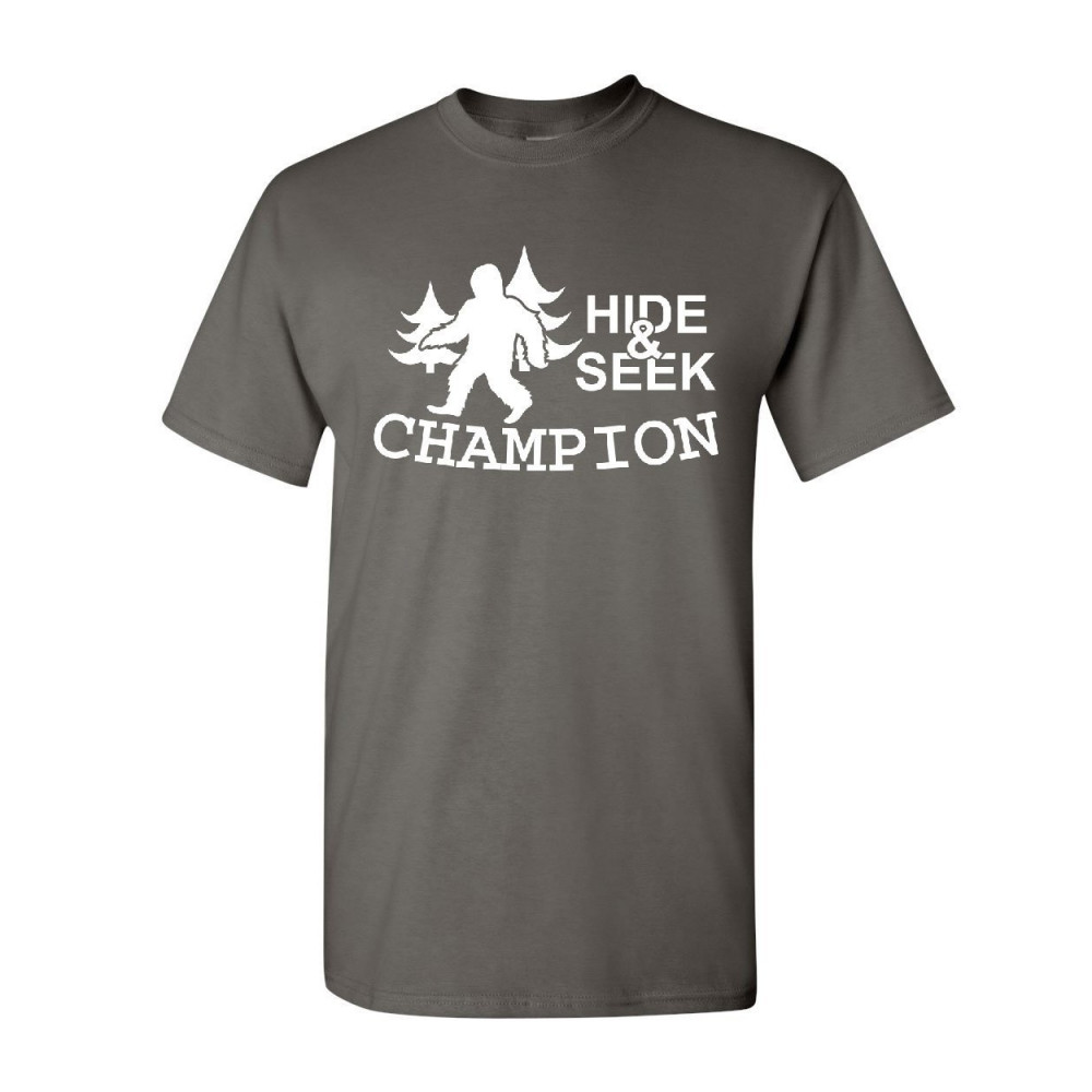 HIDE AND SEEK CHAMPION t-shirt bigfoot yeti funny humor mens tee shirt charcoal