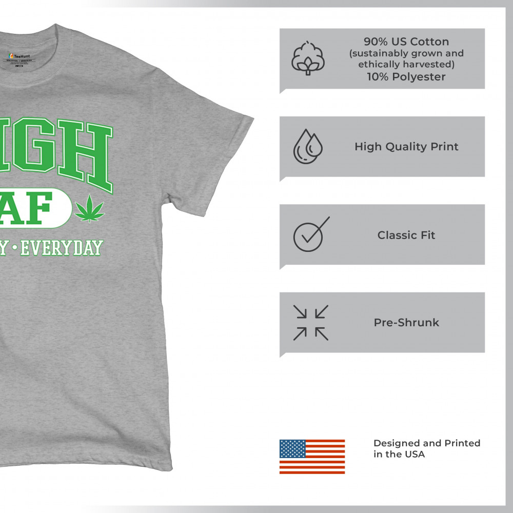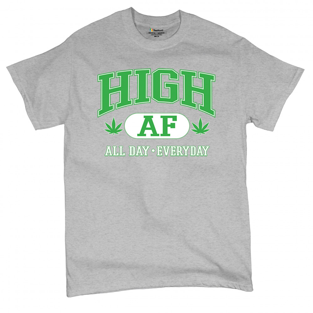 Stay lifted in style with this HIGH AF design, complete with bold letters, cannabis leaves, and the iconic “All Day · Everyday†slogan. It’s a loud, funny, and chill tribute to the 420 lifestyle—perfect for stoners, festival goers, and herb-loving free spirits who wear their vibe with pride.