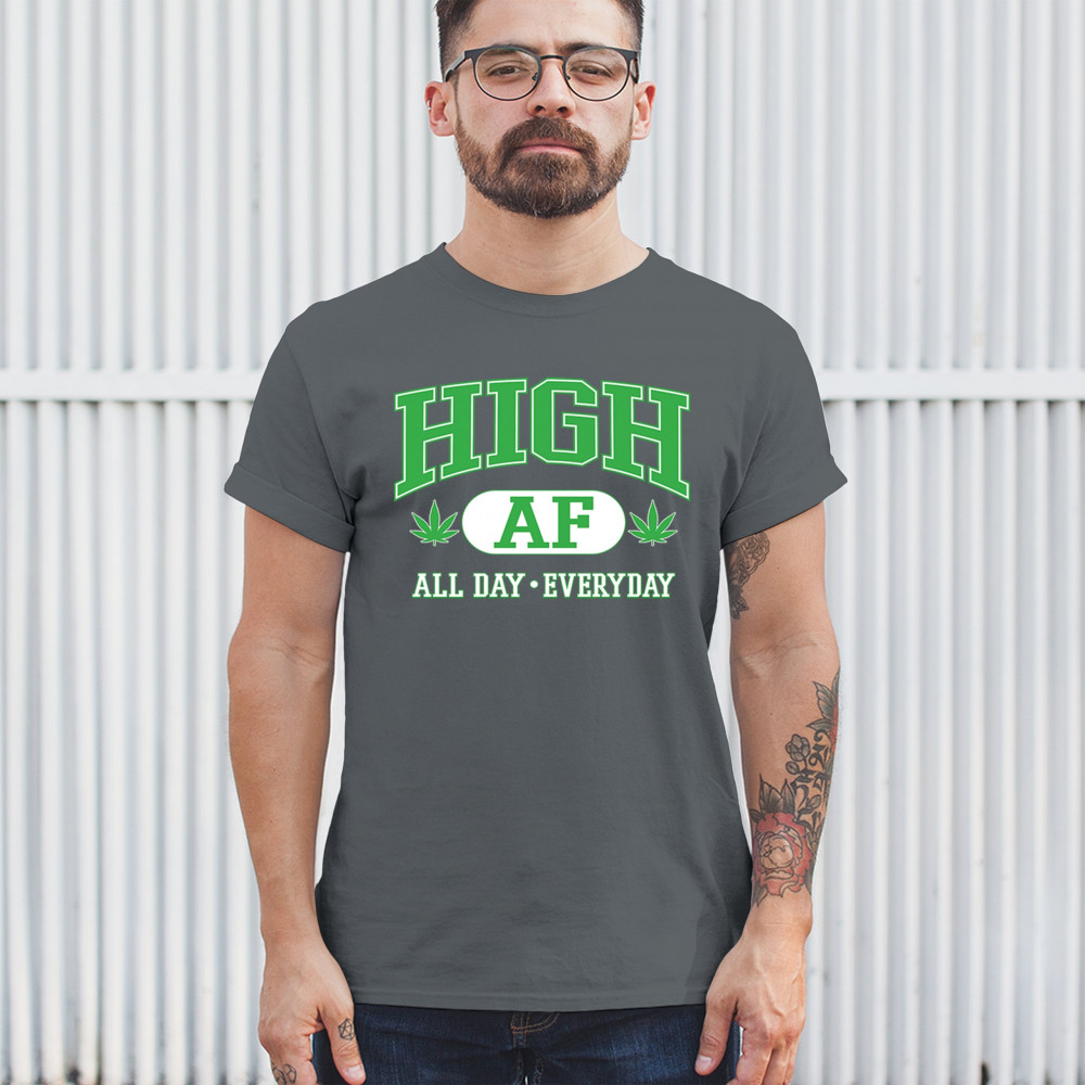 HIGH AF cannabis design with bold text and 420 humor. Great for stoners, chill vibes, festivals, and everyday weed lifestyle expression.