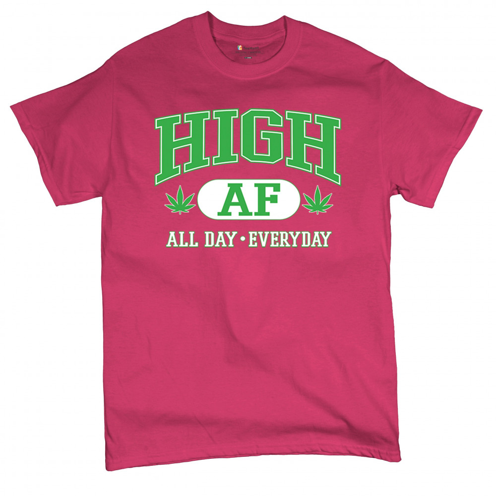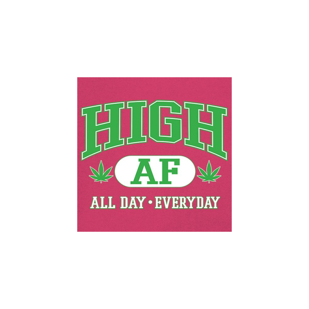 Stay lifted in style with this HIGH AF design, complete with bold letters, cannabis leaves, and the iconic “All Day · Everyday†slogan. It’s a loud, funny, and chill tribute to the 420 lifestyle—perfect for stoners, festival goers, and herb-loving free spirits who wear their vibe with pride.