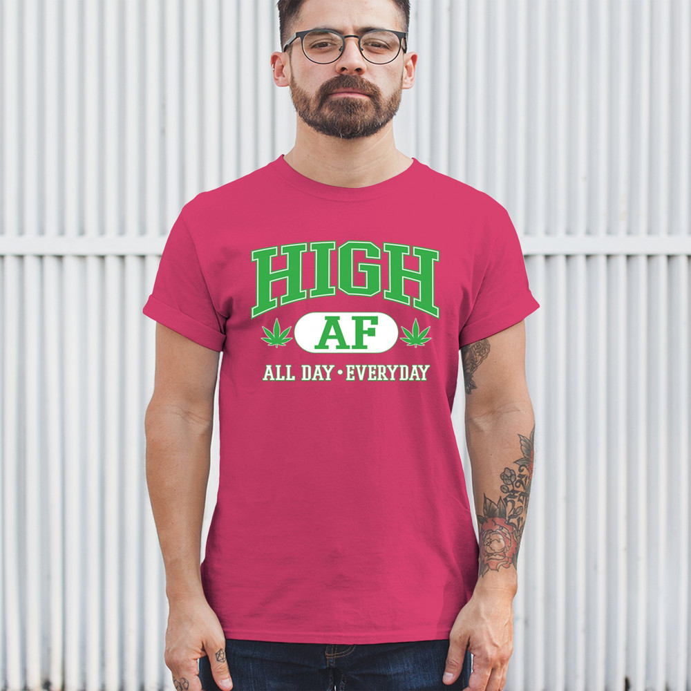 HIGH AF cannabis design with bold text and 420 humor. Great for stoners, chill vibes, festivals, and everyday weed lifestyle expression.