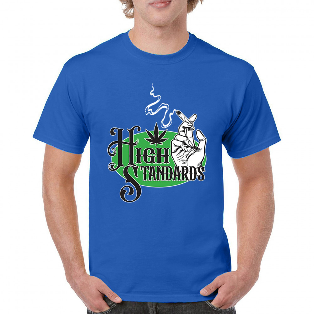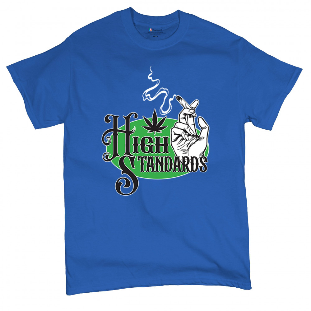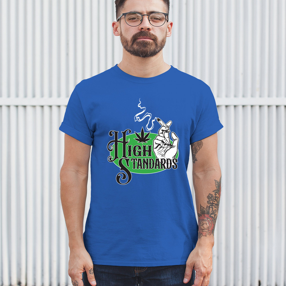 High Standards weed design with blunt humor and stoner pride. Features joint, cannabis leaf, pothead attitude, and classy chillout vibes.