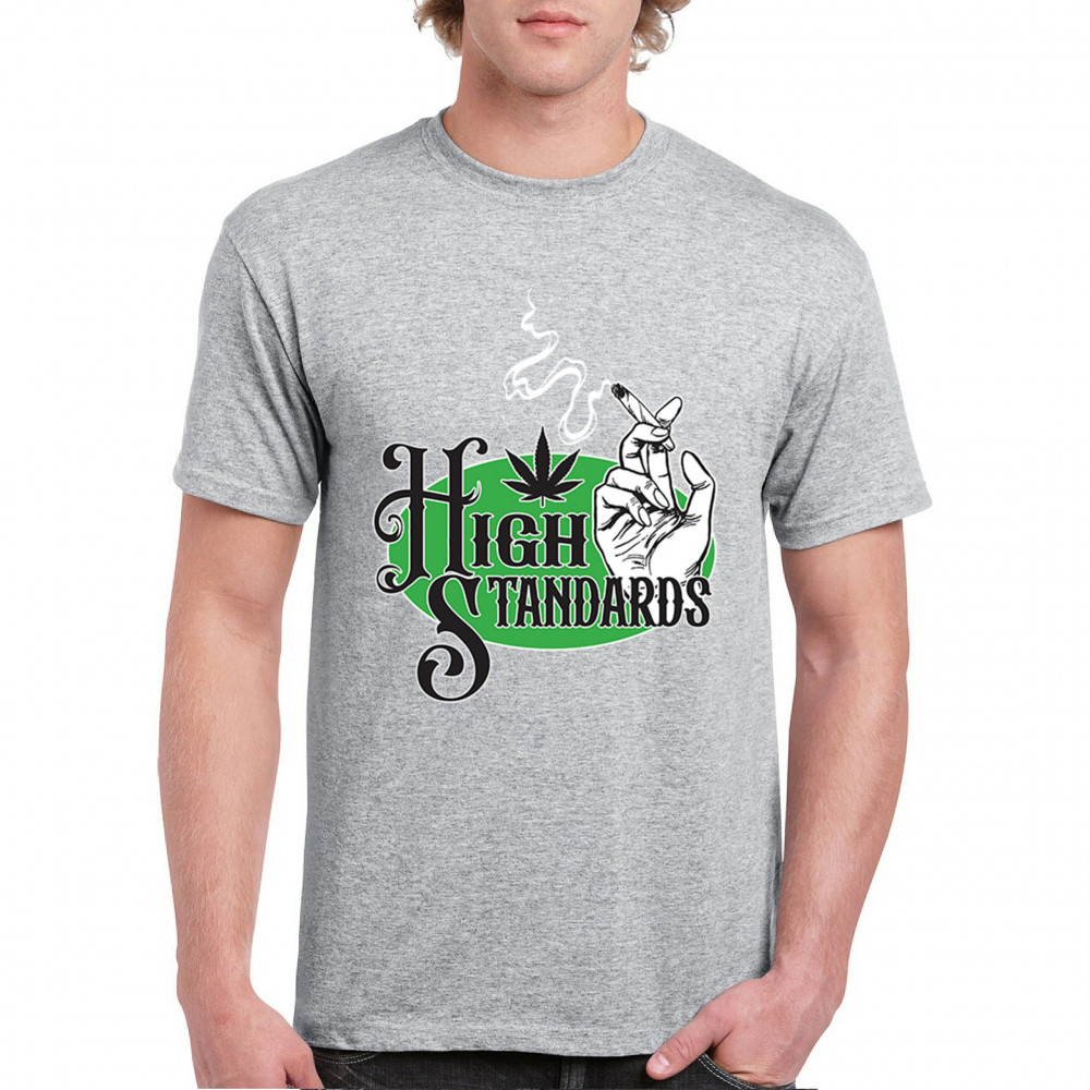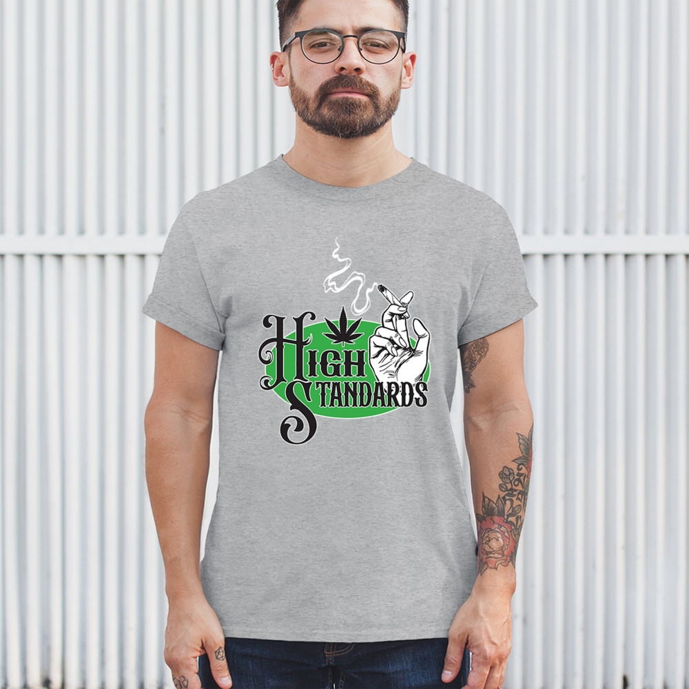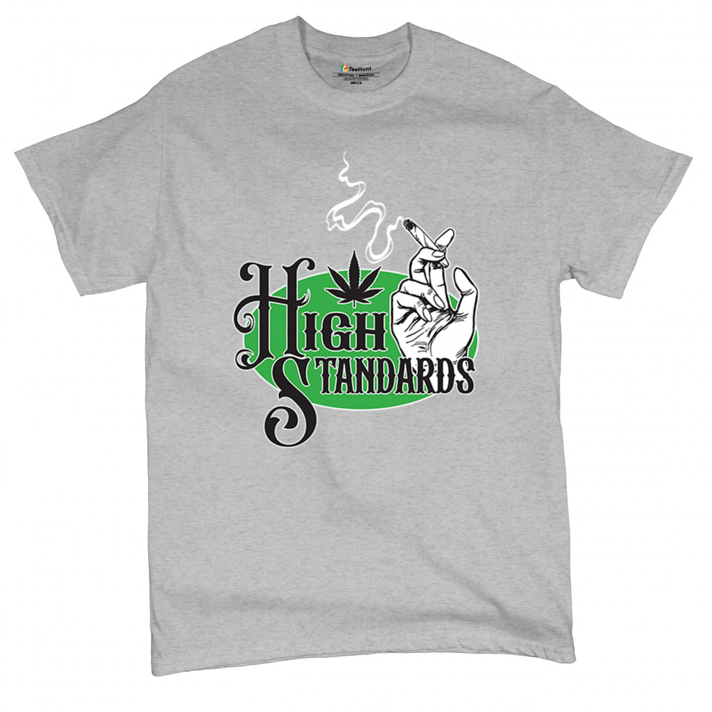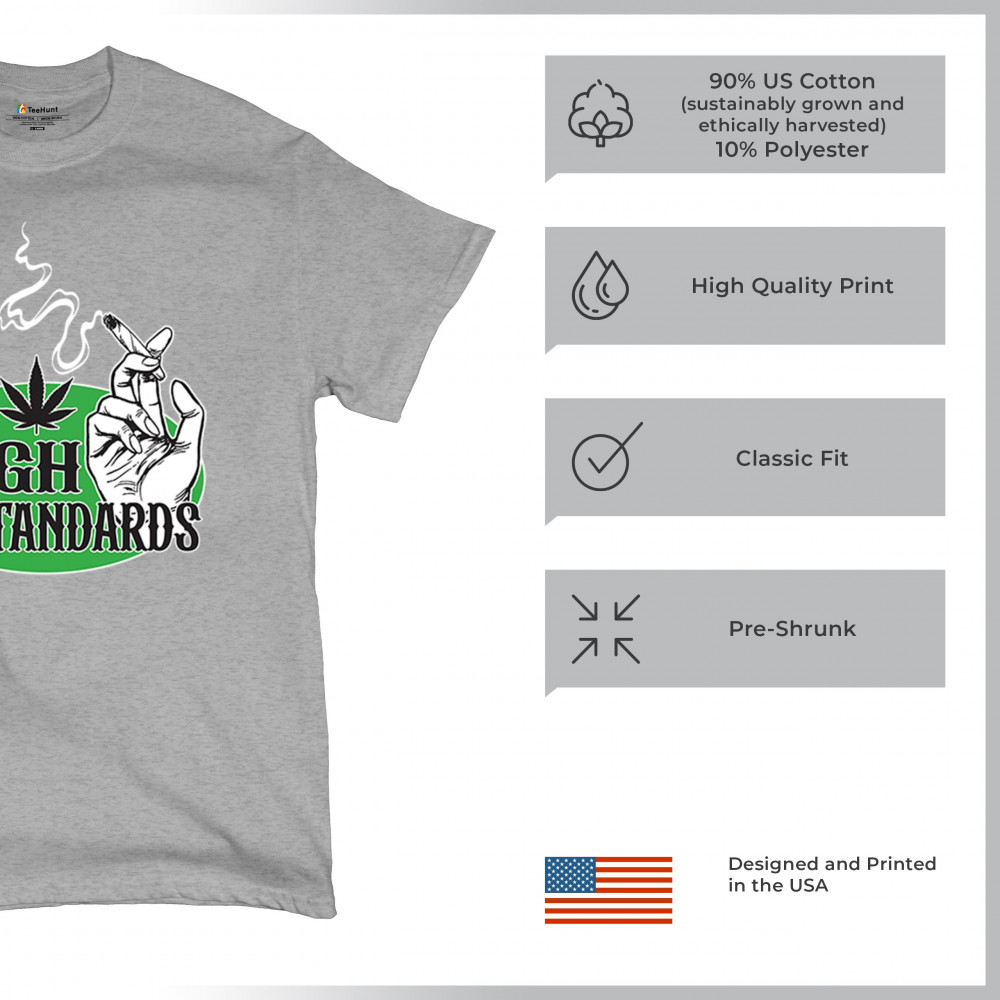 High Standards weed design with blunt humor and stoner pride. Features joint, cannabis leaf, pothead attitude, and classy chillout vibes.