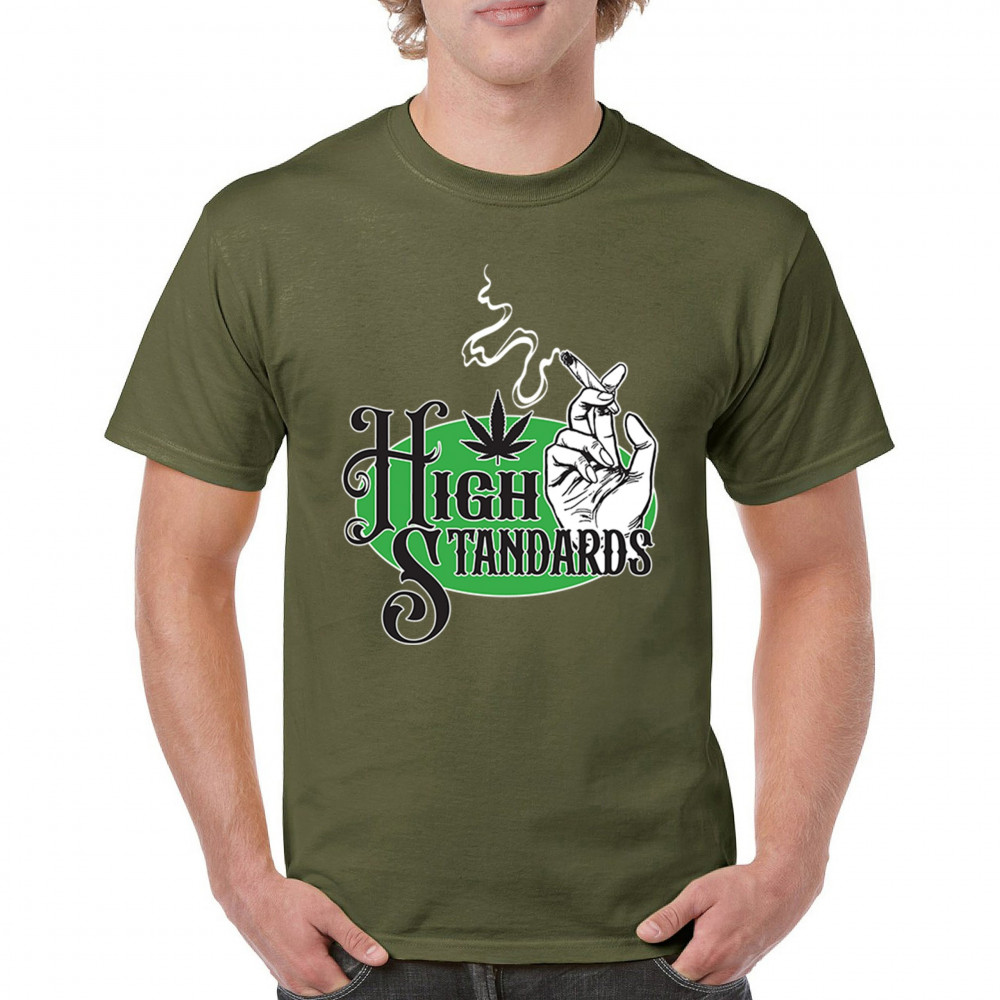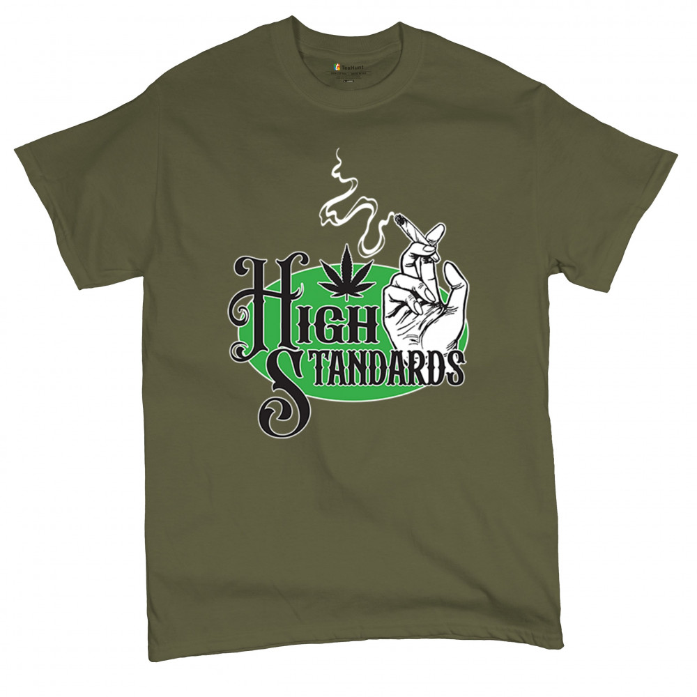 High Standards weed design with blunt humor and stoner pride. Features joint, cannabis leaf, pothead attitude, and classy chillout vibes.