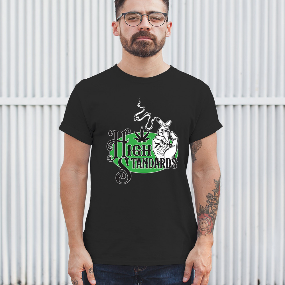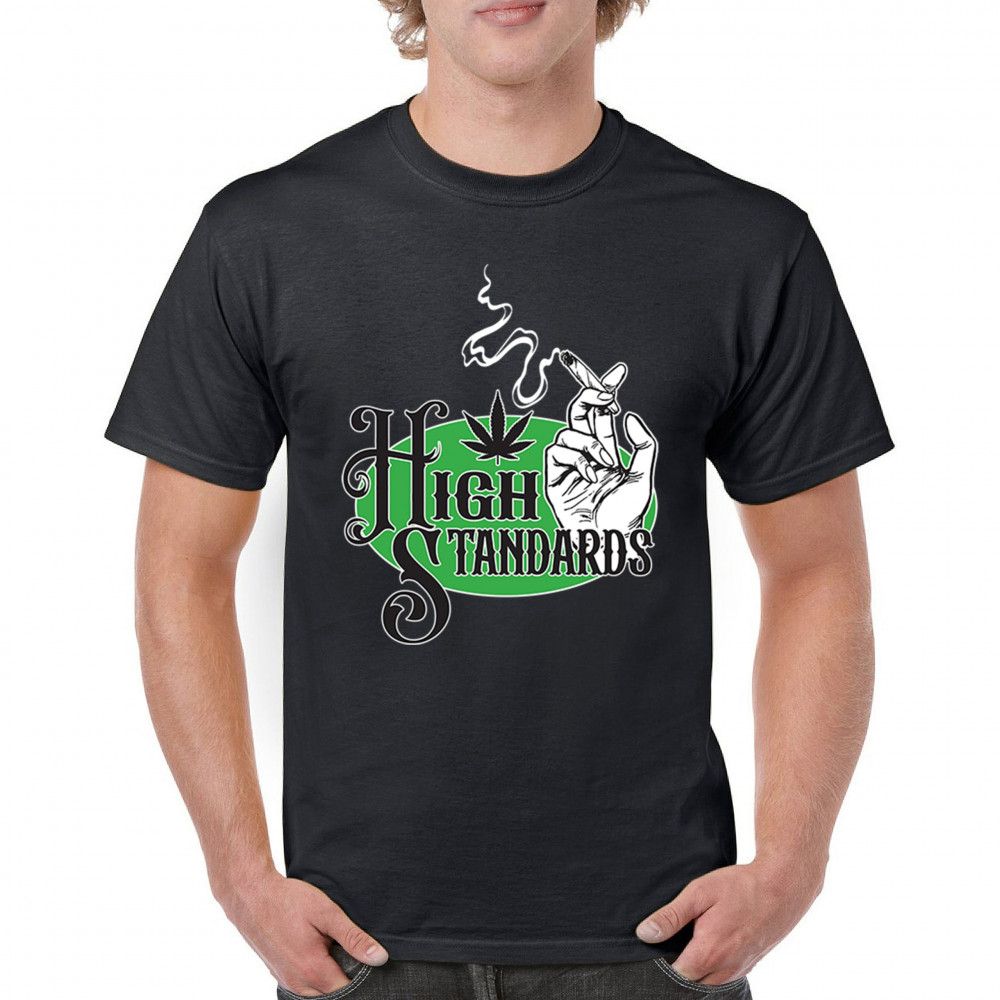 HIGH STANDARDS t-shirt funny cannabis 420 blunt joint pothead weed men's tee black