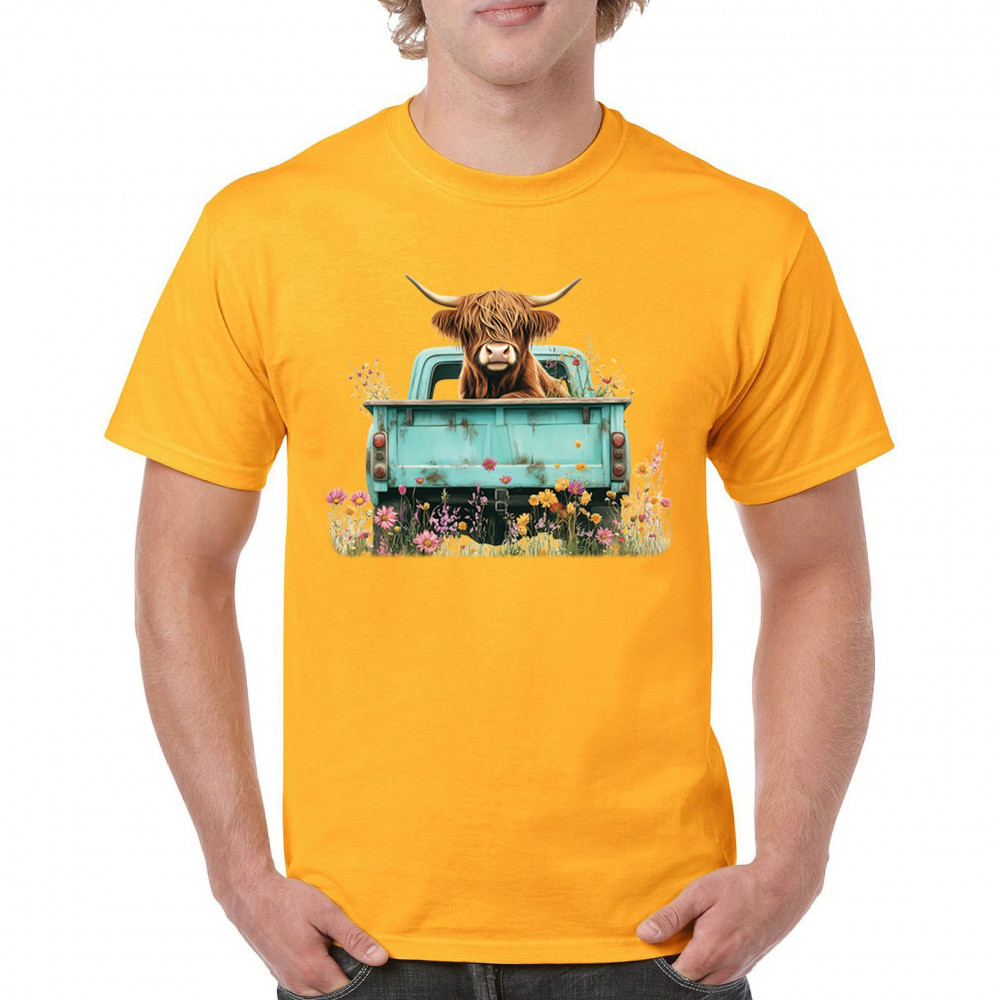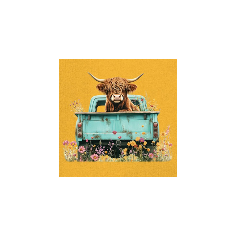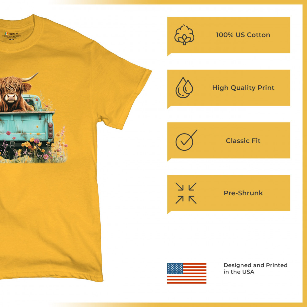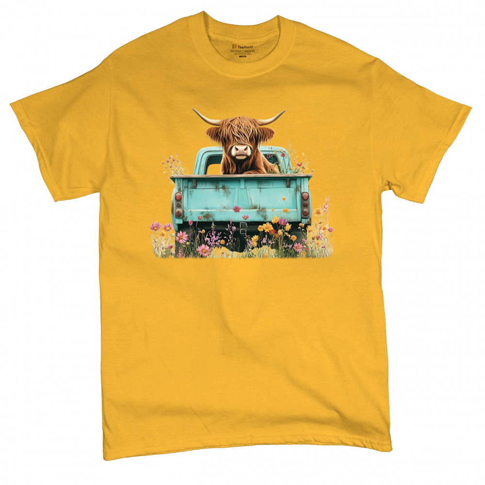 Celebrate rustic charm with this Highland Cow truck design, combining farmhouse floral truck art, boho ranch vibes, and country farmhouse shirt appeal. Perfect for cow lovers, barn style enthusiasts, and small town rural living. A vintage truck cow design that’s both cozy and stylish.