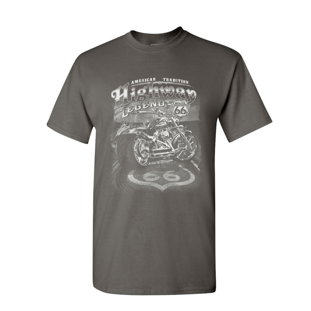 HIGHWAY LEGEND ROUTE 66 t-shirt biker american tradition chopper mens tee shirt charcoal