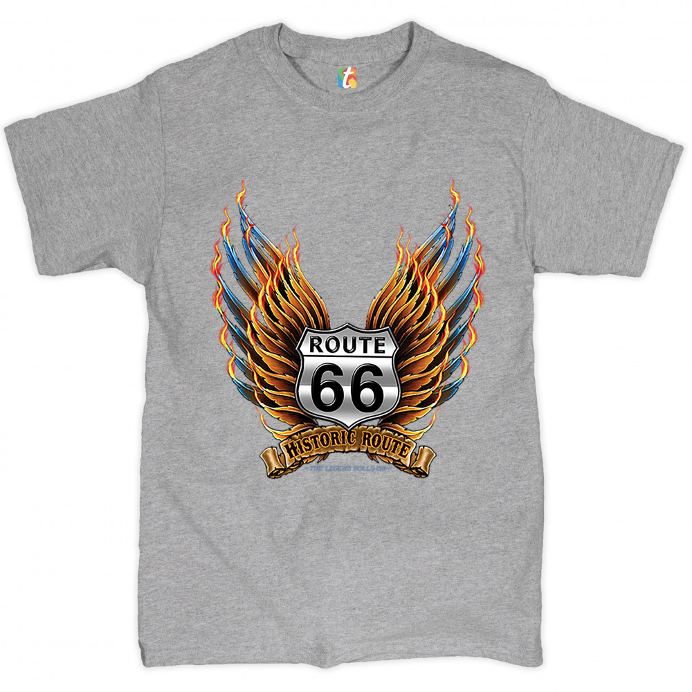 HISTORIC ROUTE 66 t-shirt the legend rolls on the mother road men's tee gray