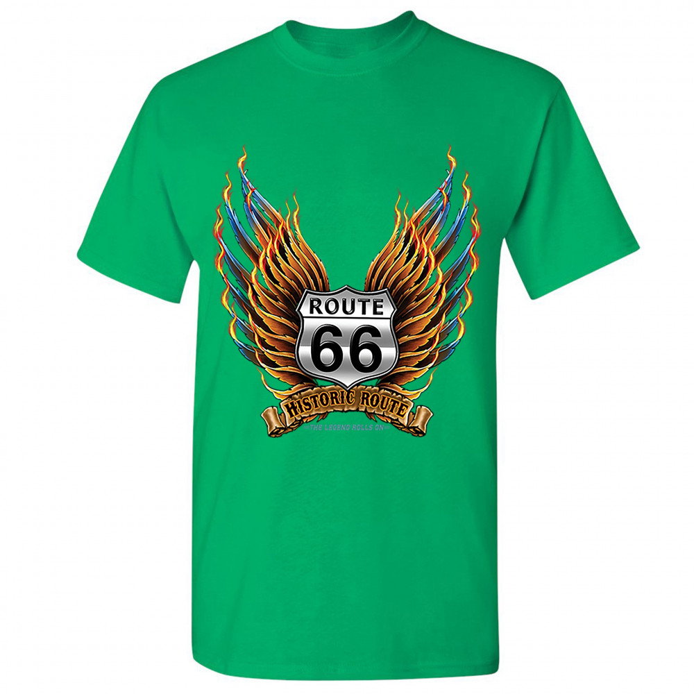 HISTORIC ROUTE 66 t-shirt the legend rolls on the mother road men's tee green