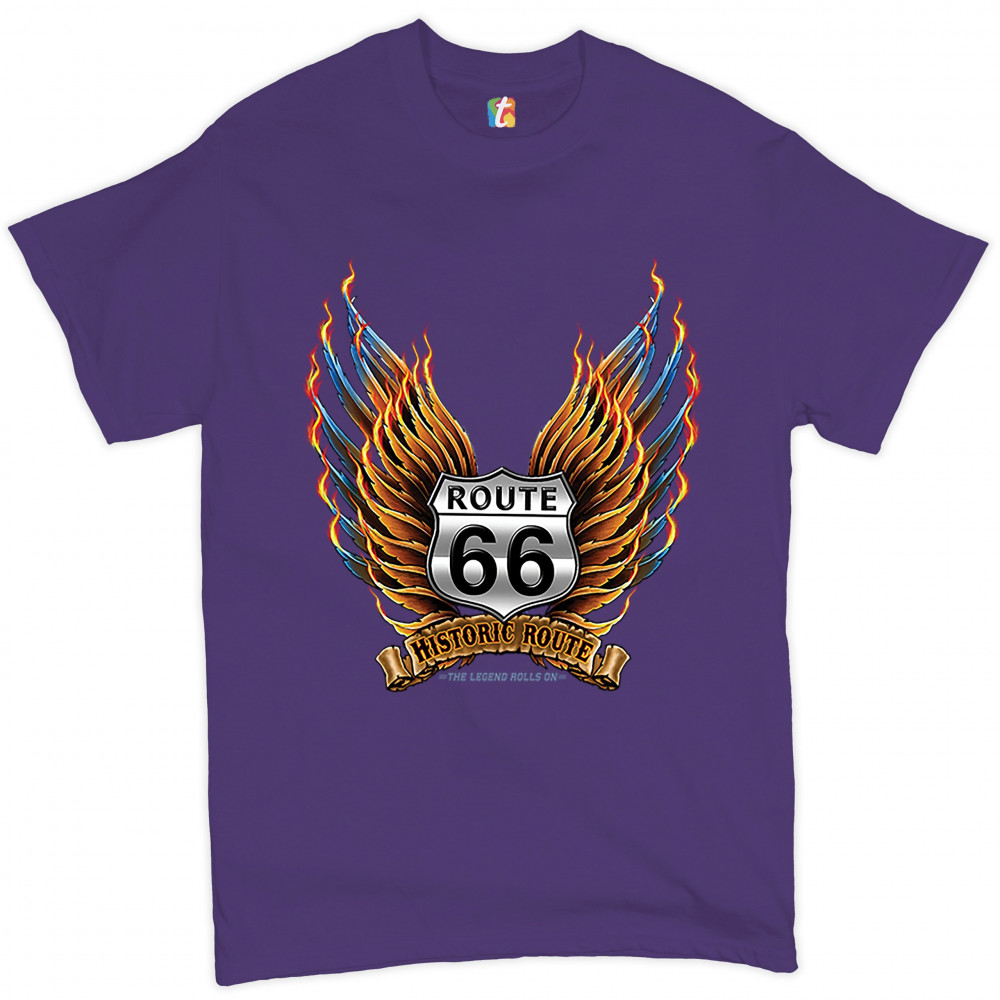 HISTORIC ROUTE 66 t-shirt the legend rolls on the mother road men's tee purple