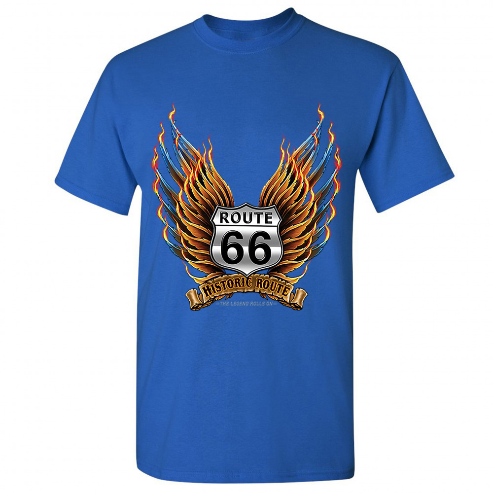 HISTORIC ROUTE 66 t-shirt the legend rolls on the mother road men's tee royal blue
