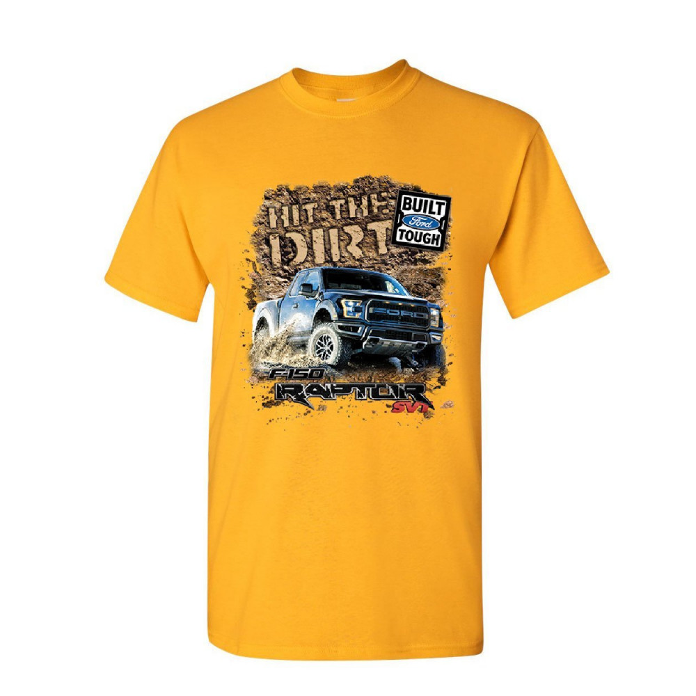 HIT THE DIRT built ford tough t-shirt f-150 raptor pickup truck mens tee shirt yellow