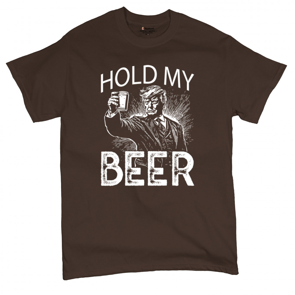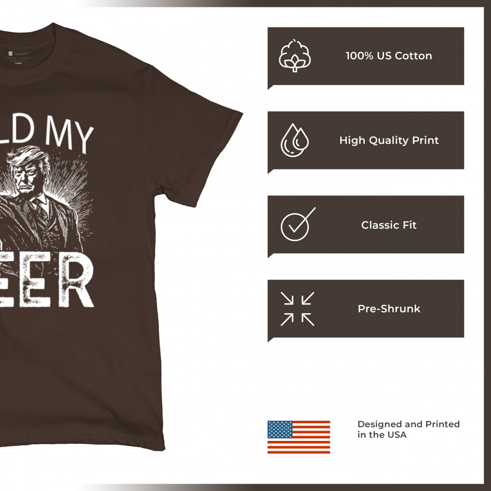 Celebrate the boldness of America First with the "Hold My Beer" design. A tribute to Trump supporters, conservatives, and proud patriots, this graphic humorously encapsulates the resilience and pride of the Red Wave movement. Perfect for rallies, casual gatherings, and those who proudly stand with Donald J. Trump, the 47th President, in the fight for freedom and the people's mandate.