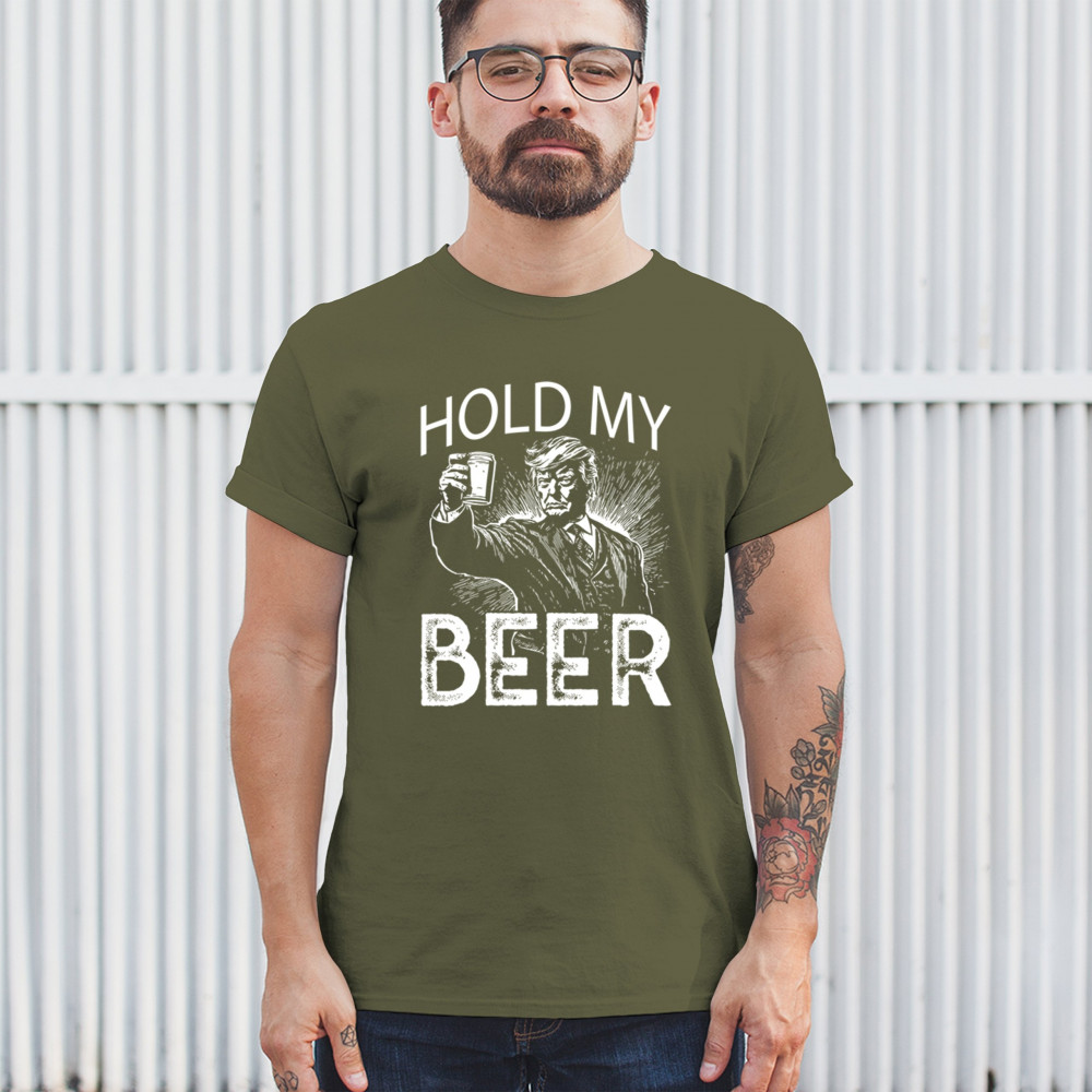 Celebrate the boldness of America First with the "Hold My Beer" design. A tribute to Trump supporters, conservatives, and proud patriots, this graphic humorously encapsulates the resilience and pride of the Red Wave movement. Perfect for rallies, casual gatherings, and those who proudly stand with Donald J. Trump, the 47th President, in the fight for freedom and the people's mandate.